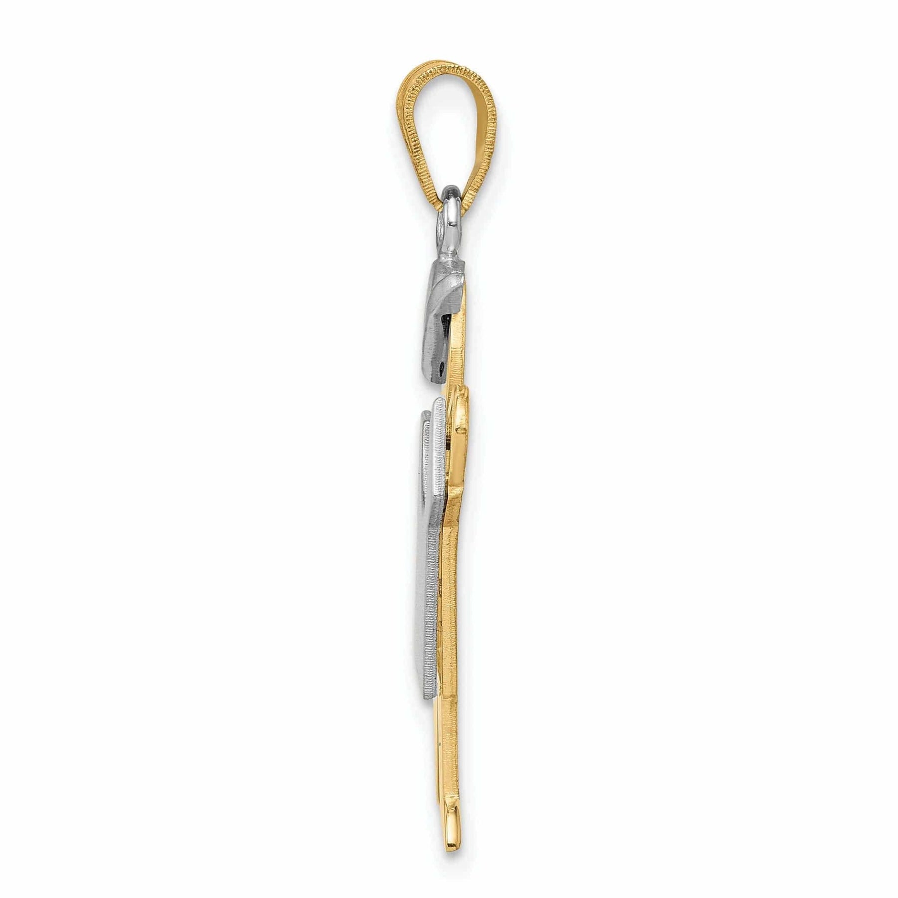 Indulge in whimsical charm with this stunning 14k Two-tone Polished Large Boy With Hat Kiss Charm. Crafted from solid gold and featuring a beautiful two-tone design, this charm radiates style and elegance. The polished finish adds a touch of sophistication, while the satin details give it a unique and luxurious feel. This charming piece is casted to perfection, ensuring a high-quality and timeless design.