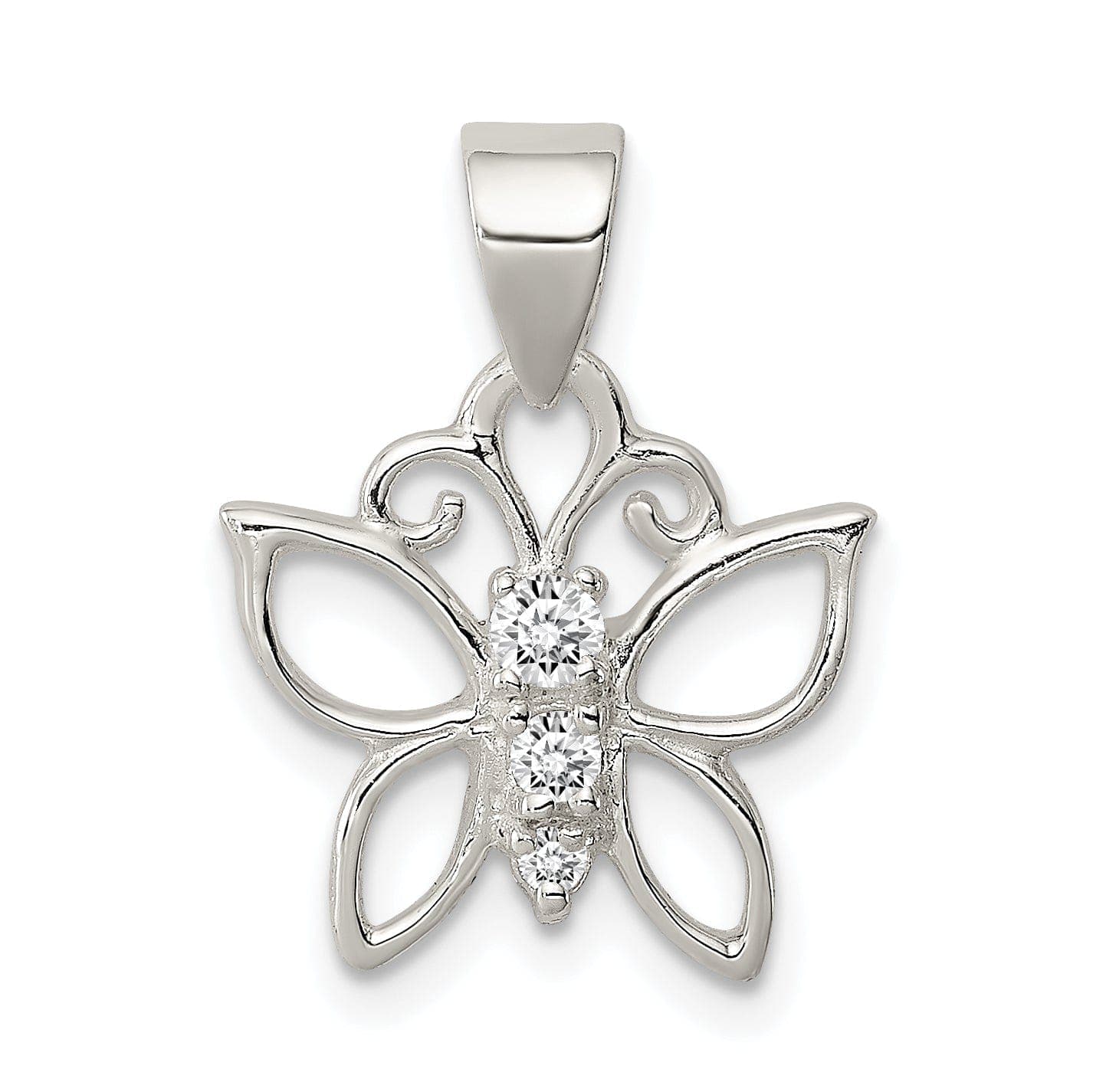 Silver Cubic Zirconia Butterfly Charm Pendant