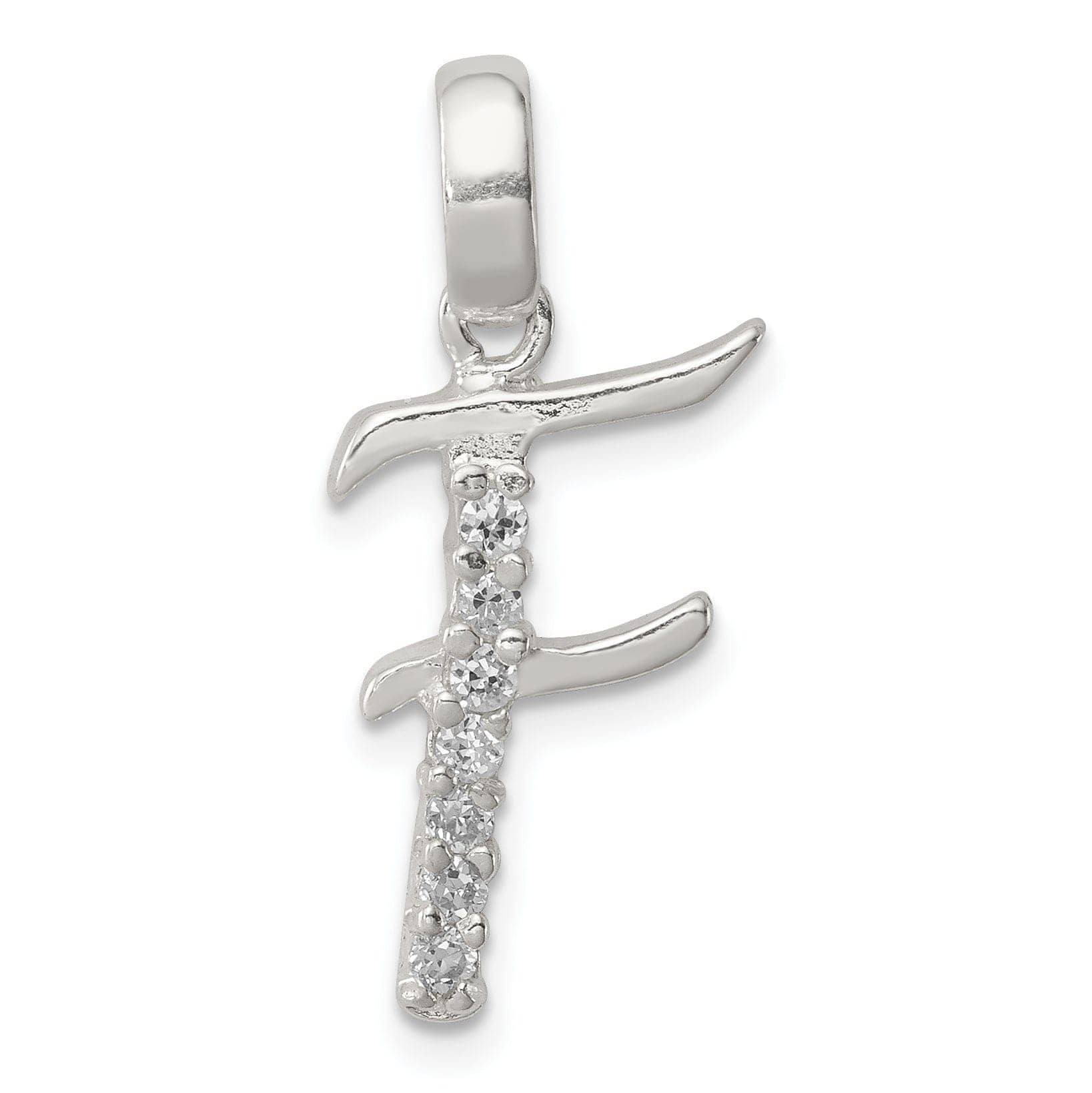 Sterling Silver CZ Initial F Charm Pendant