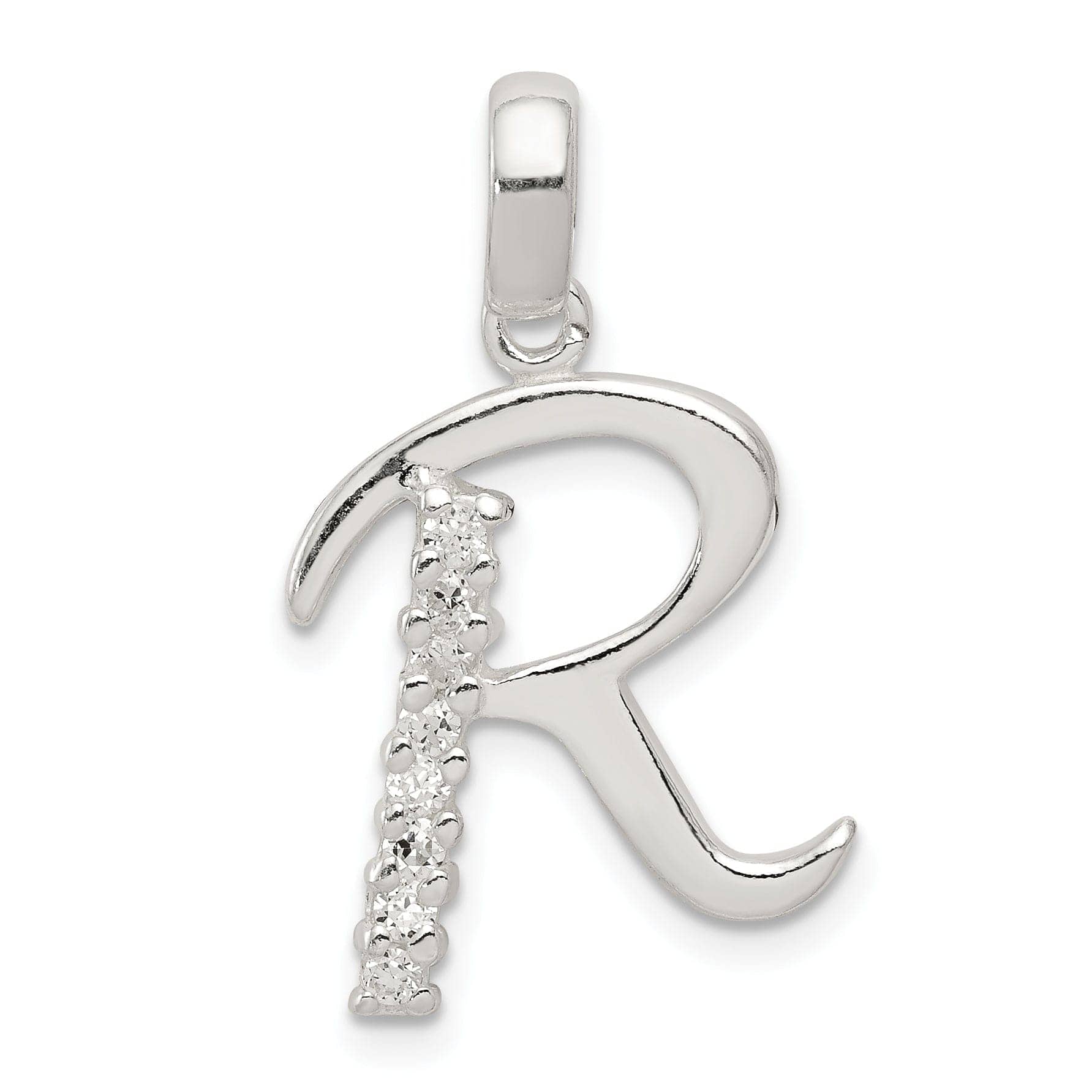 Introducing our stunning Sterling Silver CZ Initial R Charm Pendant, the perfect accessory to add a personal touch to any outfit. Crafted from high-quality sterling silver, this pendant features a dazzling cubic zirconia-embellished initial "R" that shines with brilliance.