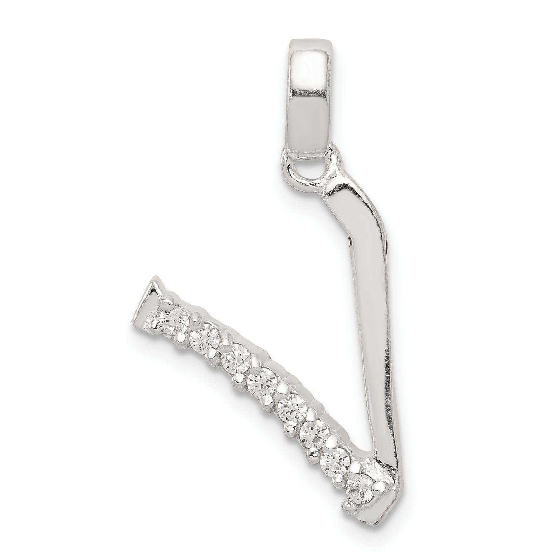 Elevate your style with our stunning Sterling Silver CZ Initial V Charm Pendant. This exquisite piece features a beautiful initial V pendant crafted from high-quality sterling silver, adorned with sparkling cubic zirconia stones for added glamour. The polished finish adds a touch of elegance, making it the perfect accessory for any outfit.