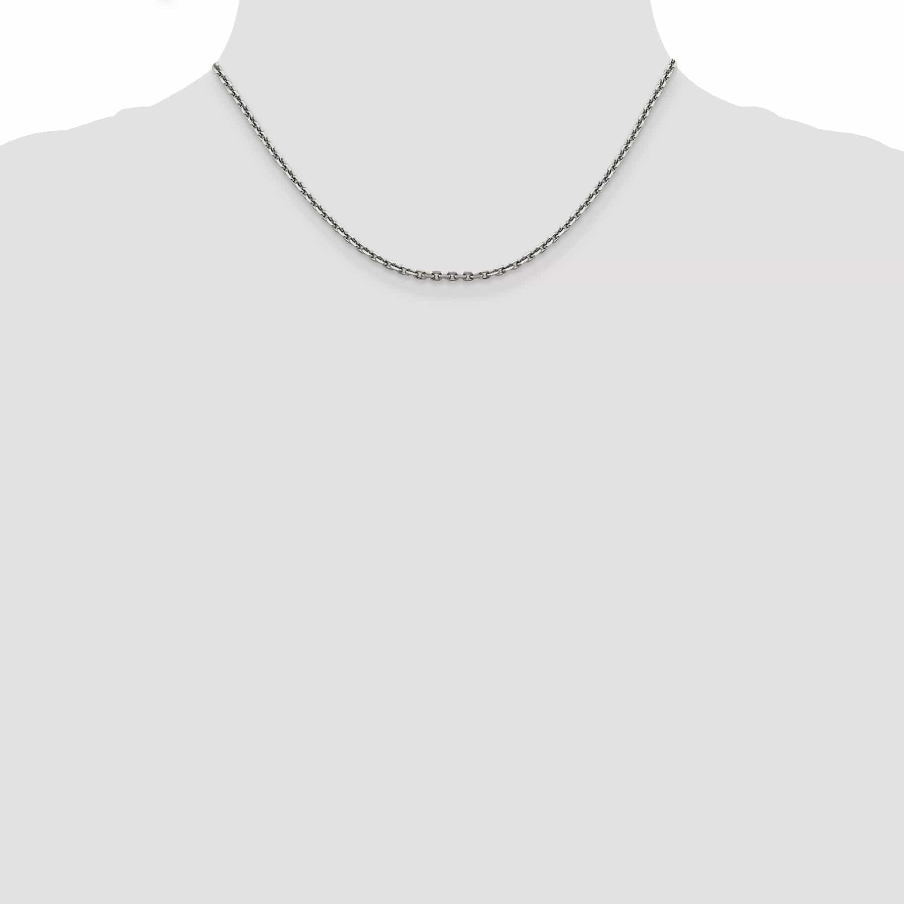 Elevate your jewelry collection with this exquisite 14k White Gold Solid D.C Cable Chain. Crafted from high-quality 14k white gold, this chain features a stunning diamond cut finish that adds a touch of sophistication and sparkle to any outfit. Measuring 2.50mm in width, this solid cable chain is perfect for wearing alone or for showcasing your favorite pendants.