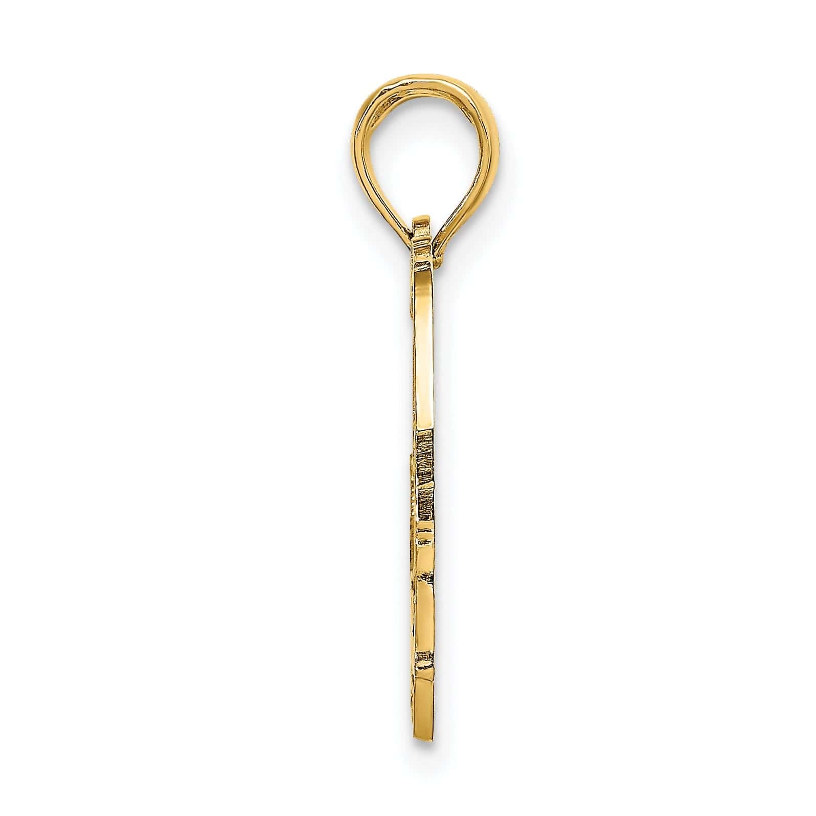 Add a touch of coastal chic to your wardrobe with our 14K Yellow Gold Textured Polished Finish Map Shape of Cape Cod Charm Pendant. Order yours today and bring a piece of Cape Cod wherever you go.