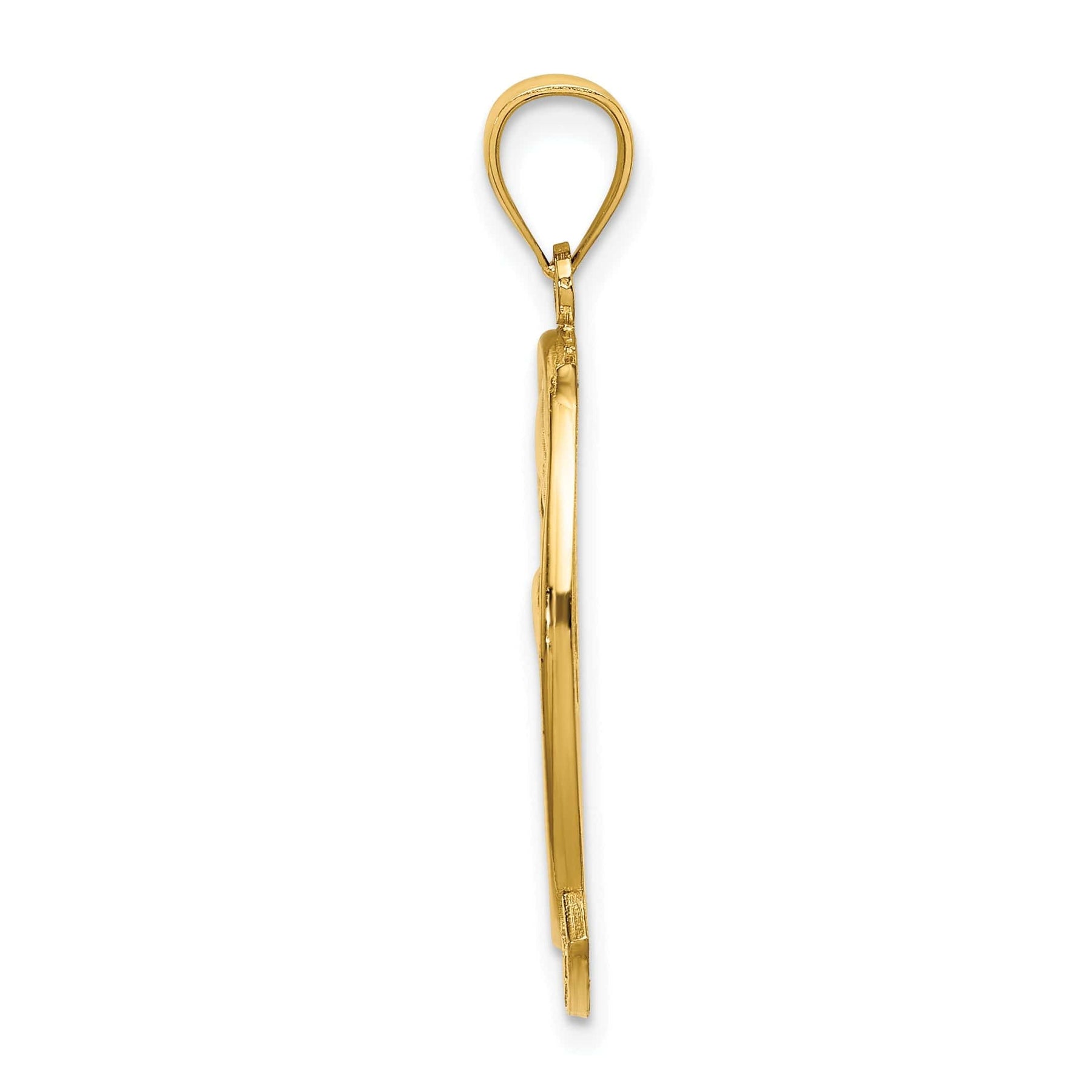 14K Yellow Gold Polished Finish SEA ISLE Dolphin with Sunset Scene Design Oval Shape Charm Pendant