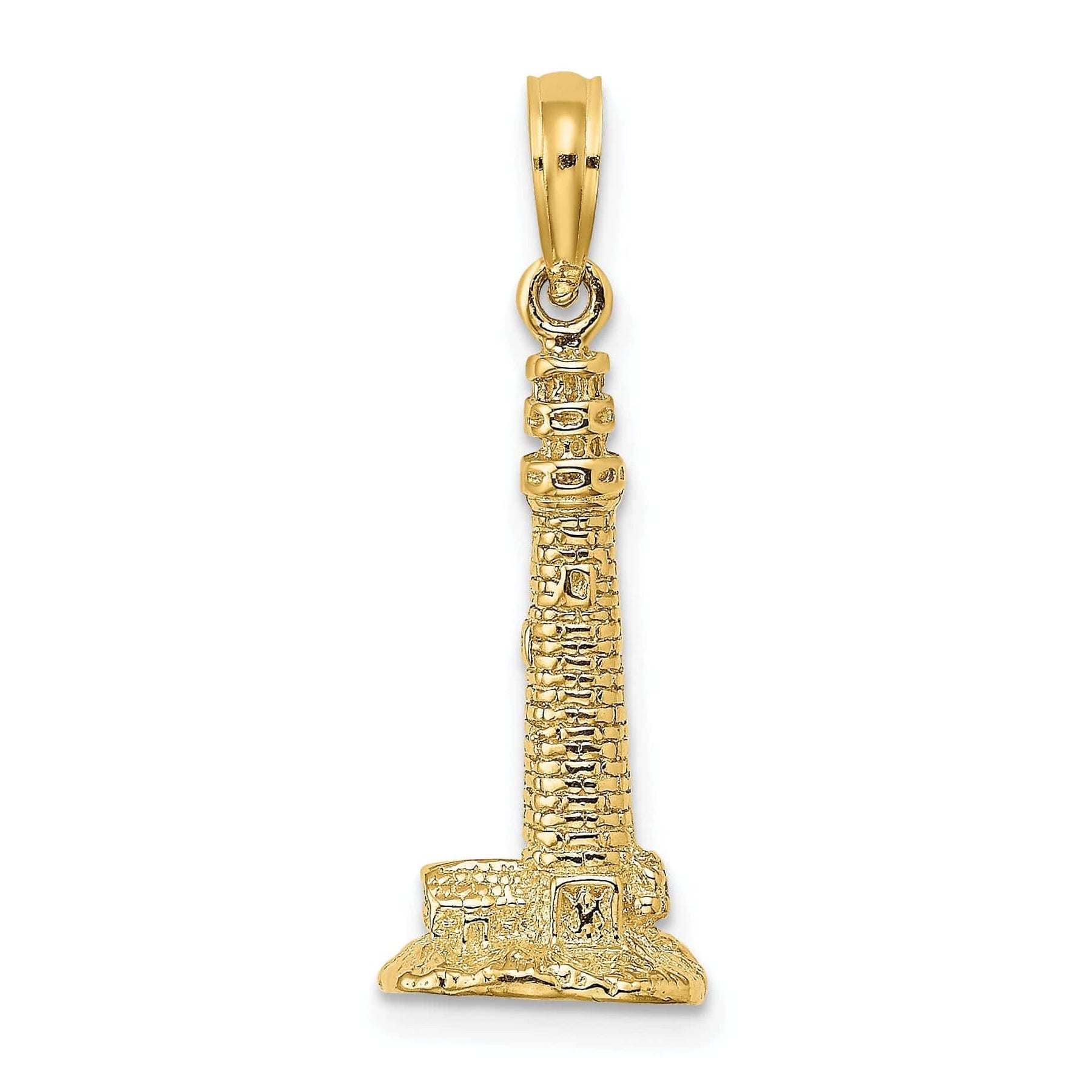 14K Yellow Gold Textured Polished Finish 3-Dimensional Cape May, NJ Lighthouse Charm Pendant