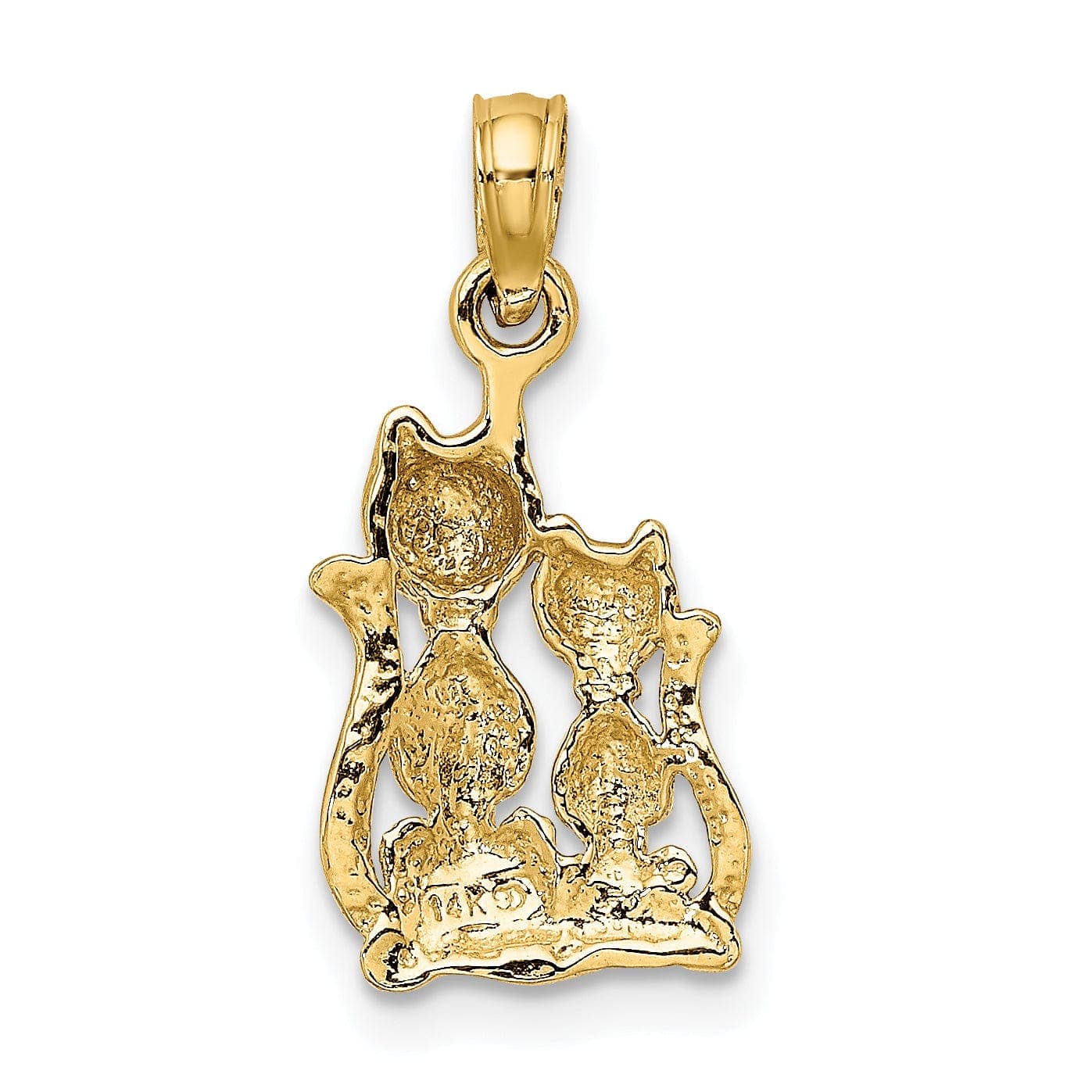 14k Yellow Gold White Rhodium Polished Finish Two Cats Sitting Charm Pendant