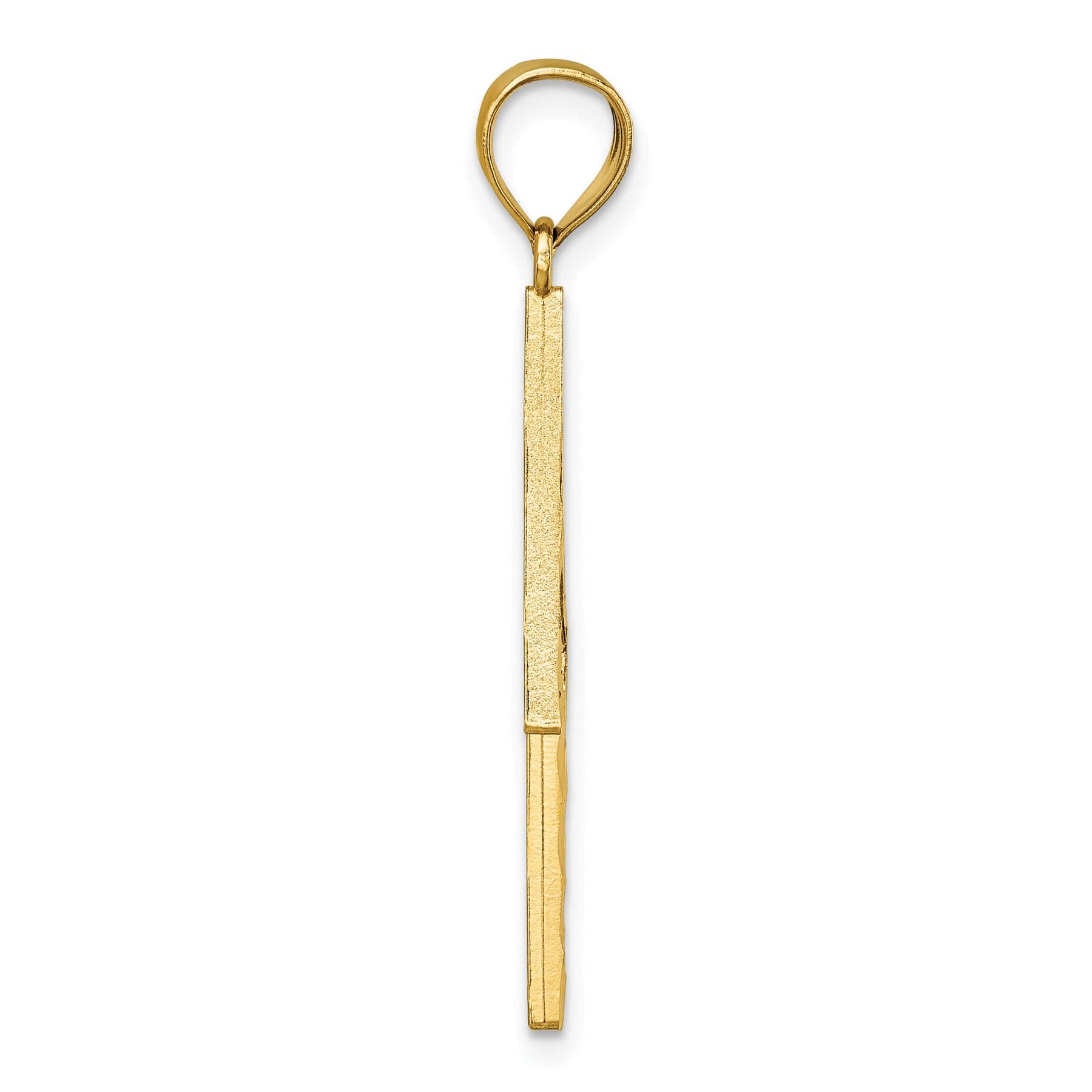 Elevate your style with our stunning 14k Yellow Gold Textured Finish Lightning Bolt Pendant. Crafted from high-quality 14K yellow gold, this pendant features a unique textured finish that adds depth and character. Lightweight and durable, it weighs just 1.31 grams and measures 37.78 mm in length and 7.11 mm in width. The pendant is complemented by a sturdy bail, making it easy to wear on your favorite chain. Perfect for adding a touch of flair to any outfit, this lightning bolt pendant is a must-have accessory.