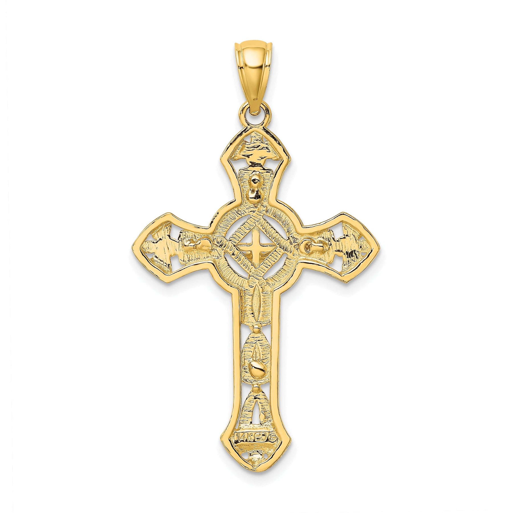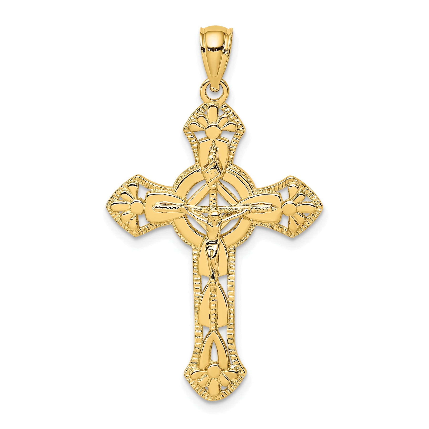 14K Yellow Gold Elegant Celtic Crucifix with Floral Tips Charm