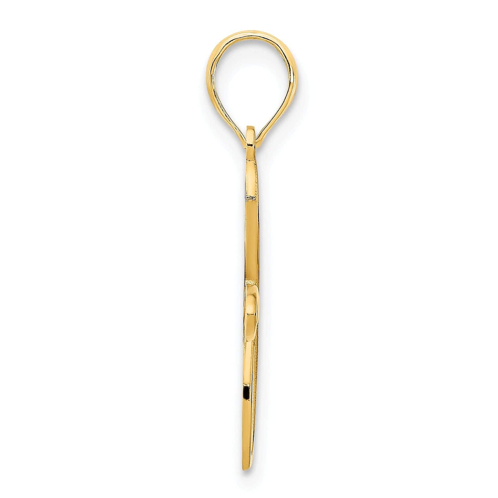 Elevate your accessory game with this exquisite 14k Yellow Gold Open Back Solid Polished Finish Flat Back Fancy Cross Trinity Design Charm Pendant. Crafted with precision and attention to detail, this pendant radiates elegance and sophistication.