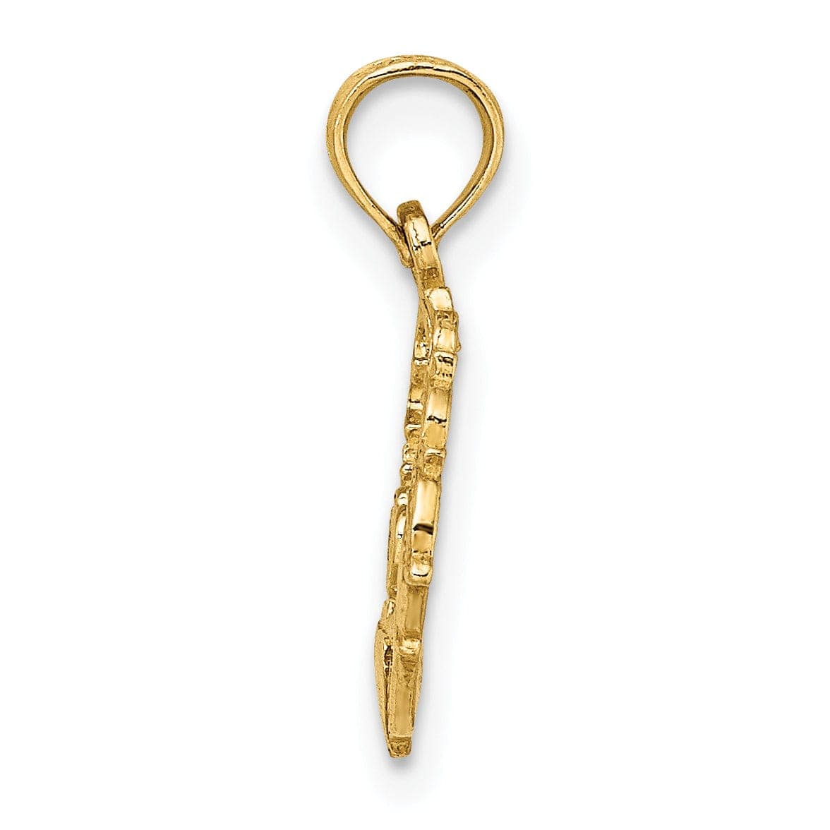 14K Yellow Gold Polished Finish Claddagh In Scallop Circle Design Charm Pendant