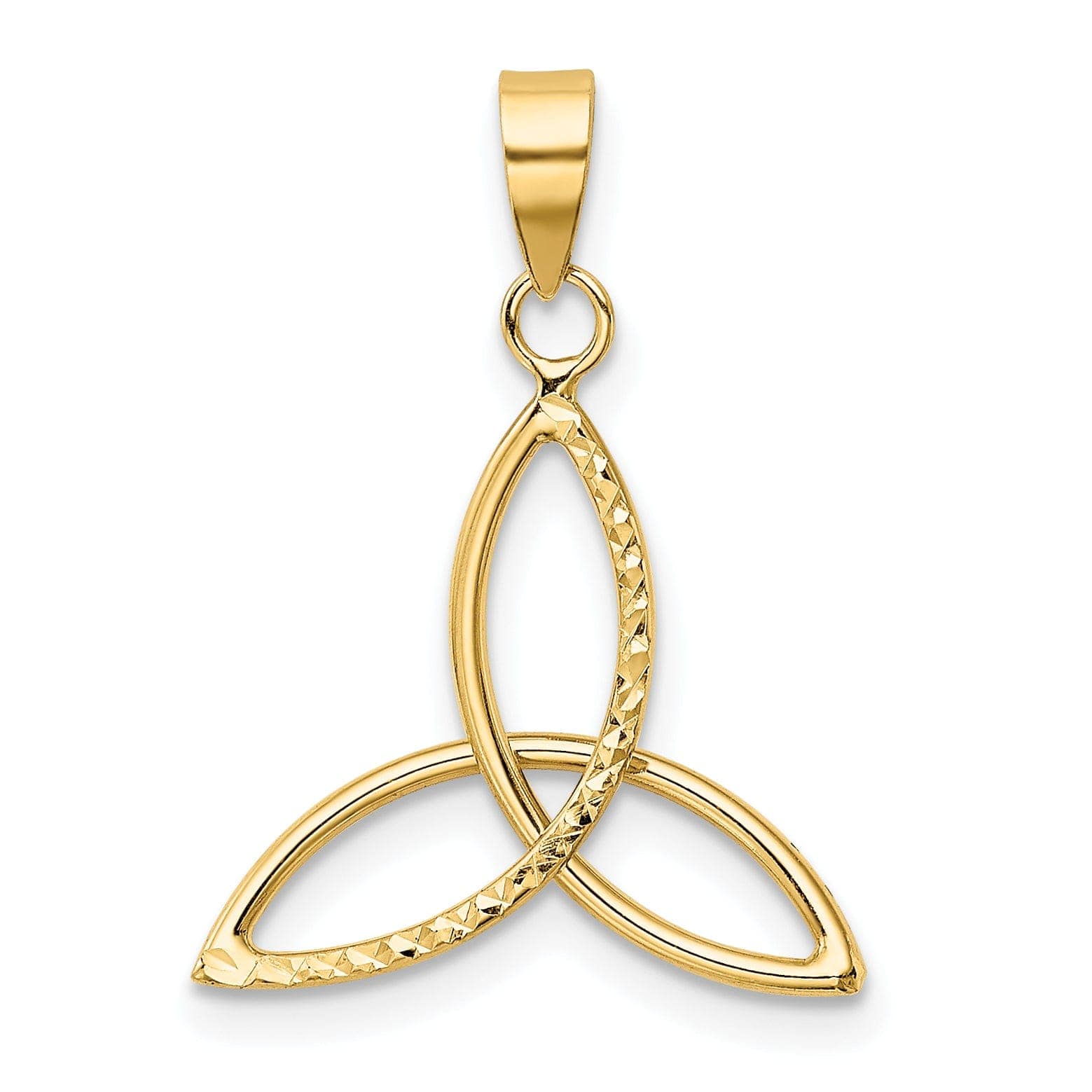 With its solid construction and durable materials, this charm pendant is designed to last for years to come. Treat yourself or a loved one to this beautiful piece and add a touch of sophistication to any outfit. Make a statement with this 14K Yellow Gold Solid Polished Diamond Cut Finish Trinity Design Charm Pendant today.