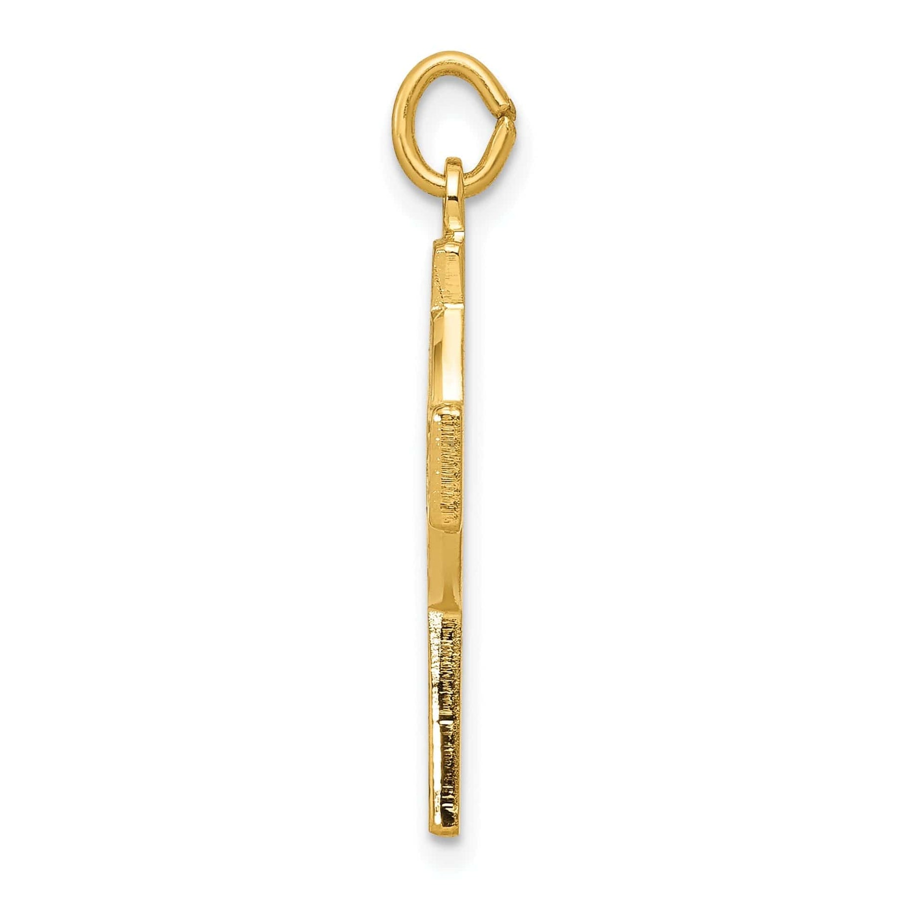 With an average weight of 1.59 grams, this pendant is lightweight and comfortable to wear. The cross measures 14mm in width, making it the perfect size for everyday wear or special occasions.