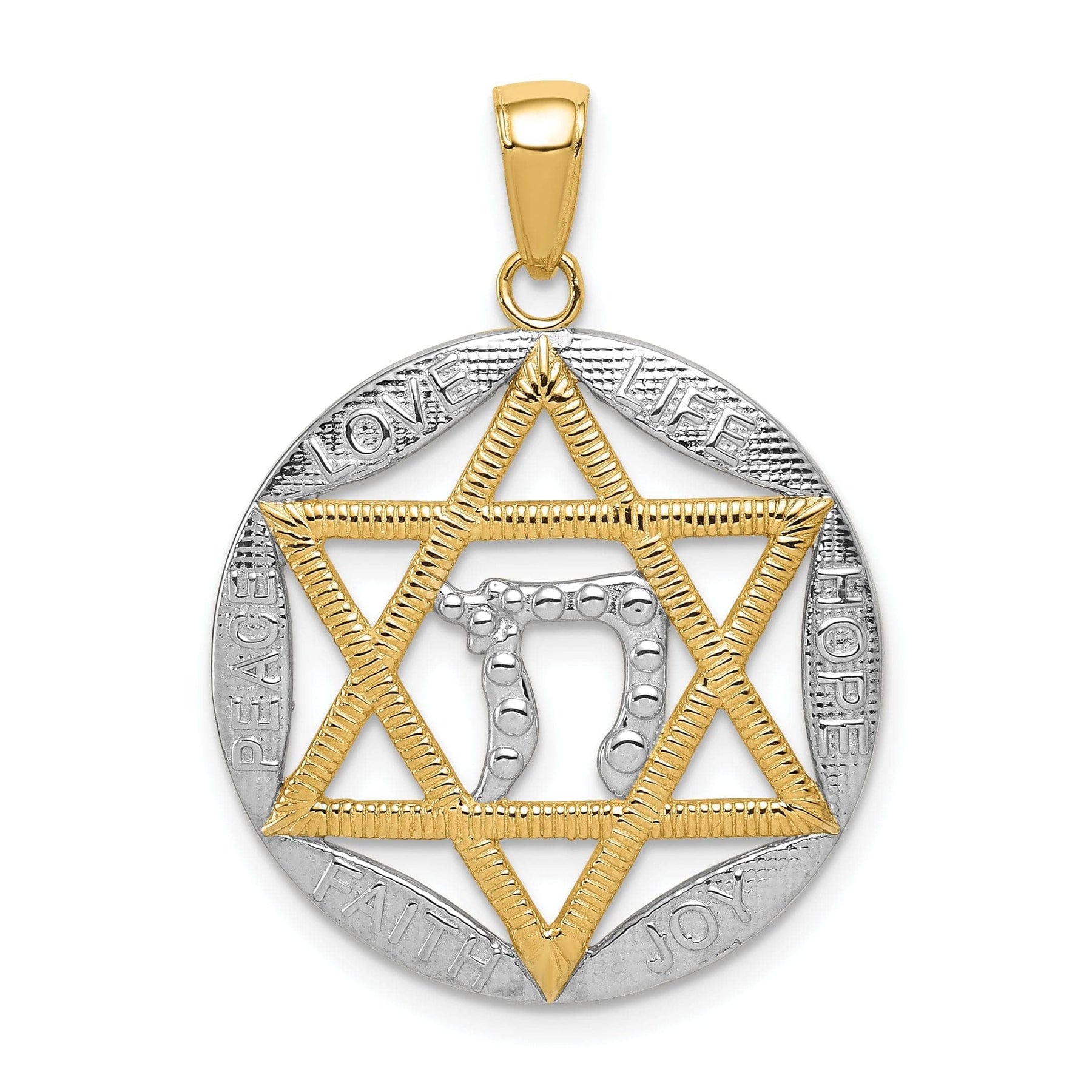 14K Yellow Gold Star of David with Chai Design Round Shape Pendant