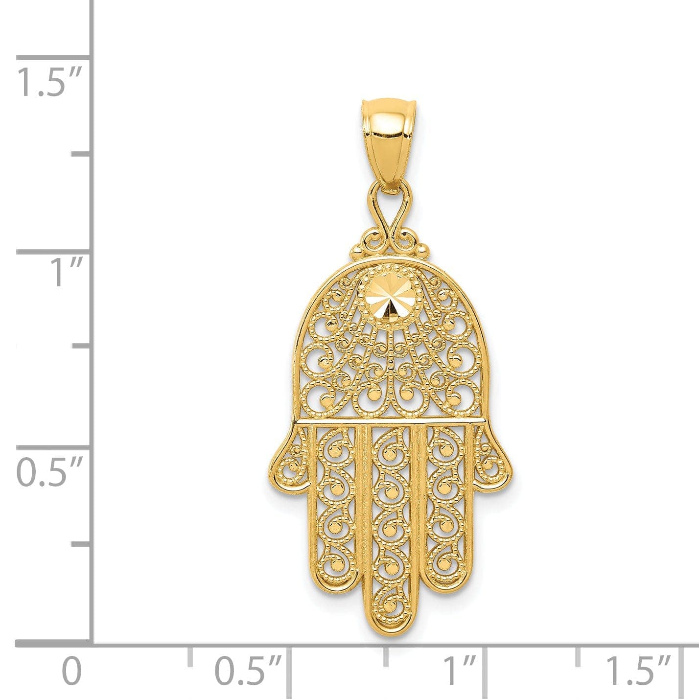 14k Yellow Gold Polished Texture D.C Finish Filigree Chamseh Pendant