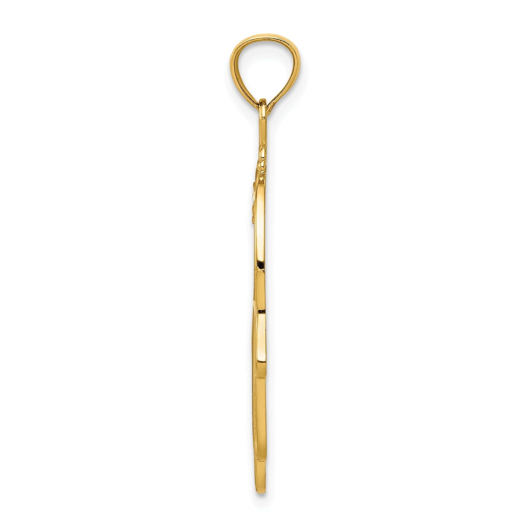 This pendant is perfect for everyday wear or special occasions, making it a versatile piece that can be dressed up or down to suit any style. The 14k yellow gold finish adds a luxurious touch to the pendant, while the polished texture gives it a smooth and shiny appearance. With its intricate details and meaningful symbolism, this pendant is a must-have for anyone looking to add a touch of elegance to their jewelry collection.