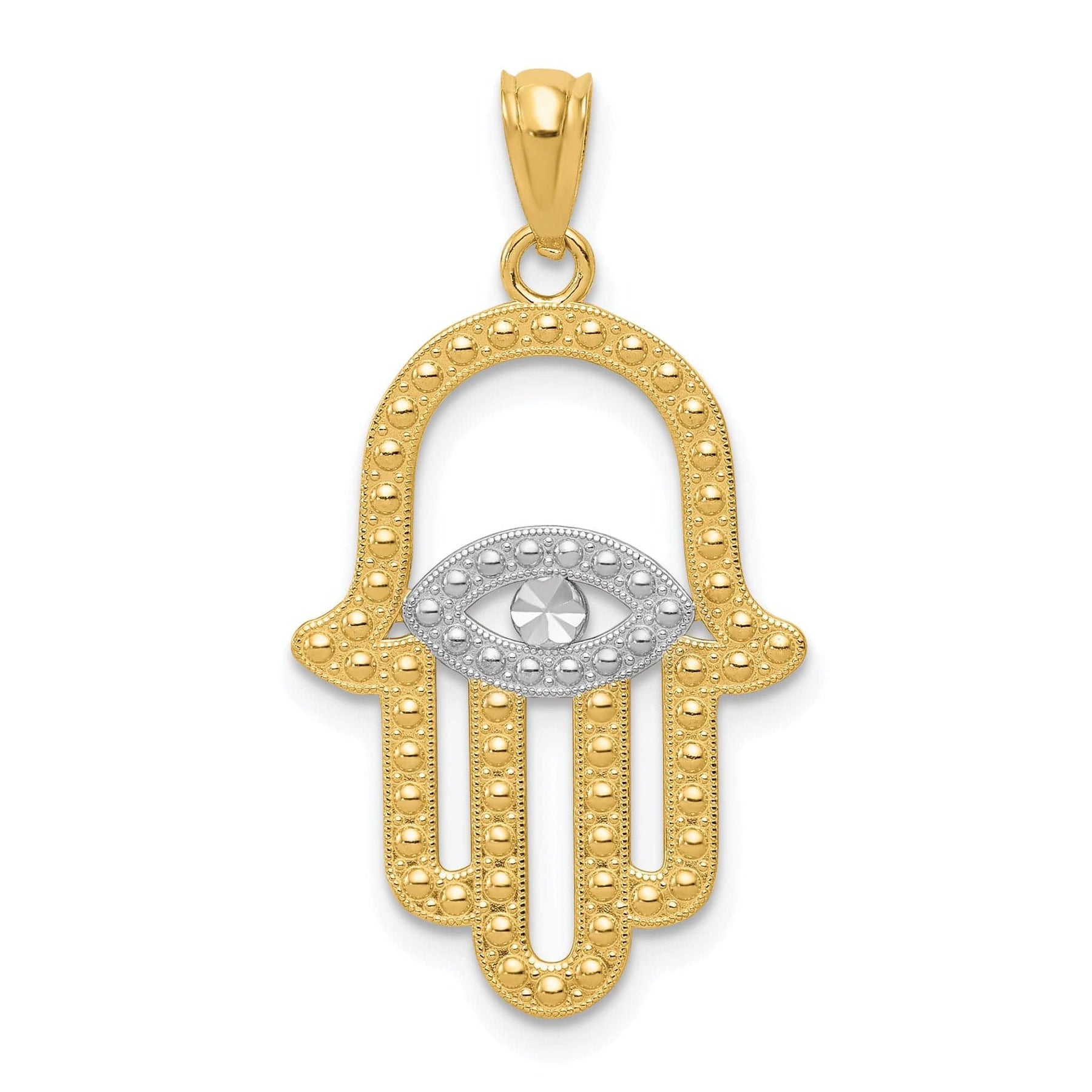 14K Yellow Gold Rhodium Polished Texture Finish Solid Hamsa Pendant