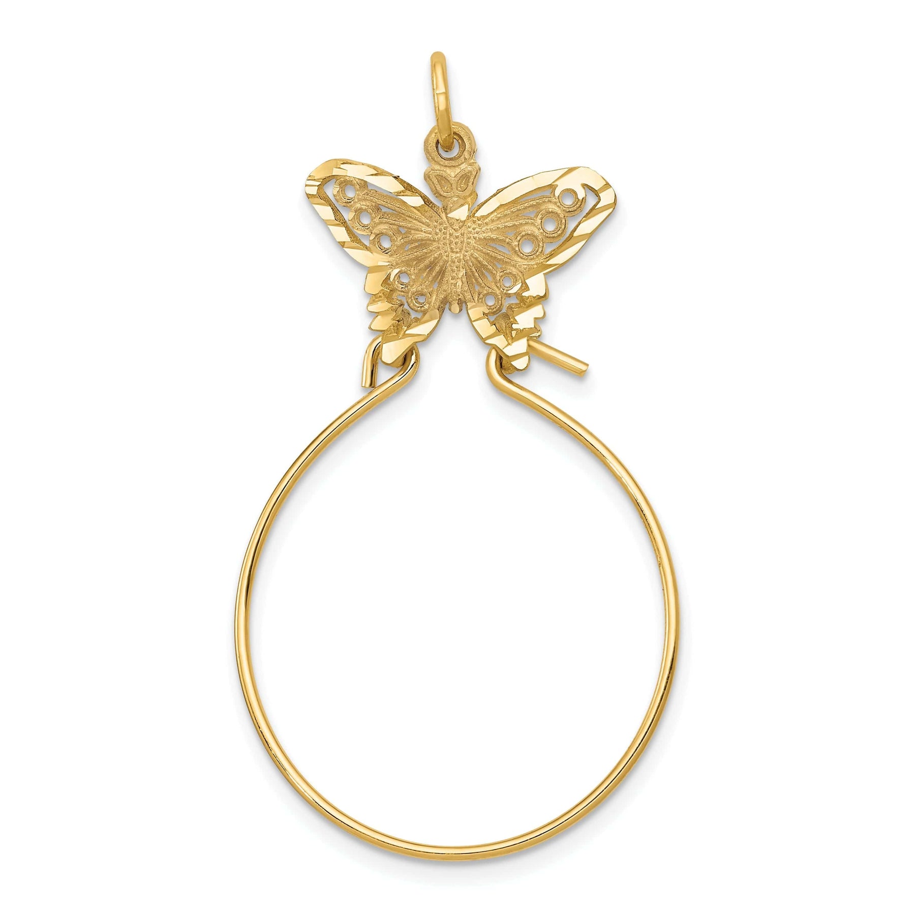 Invest in a piece that will stand the test of time and bring joy for years to come with this stunning 14k yellow gold butterfly design charm holder pendant. Add it to your jewelry collection today and let your unique style soar.
