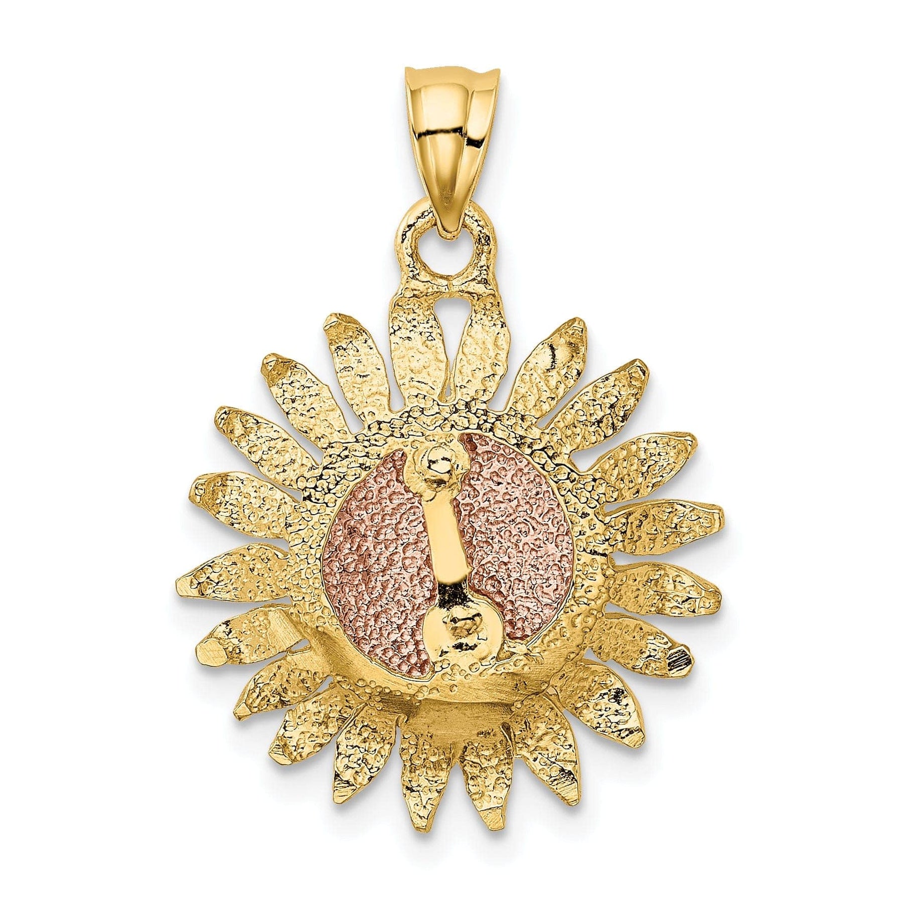 14k Two-tone Gold Casted Open Back Solid Textured Polished Finish Sunflower Charm Pendant