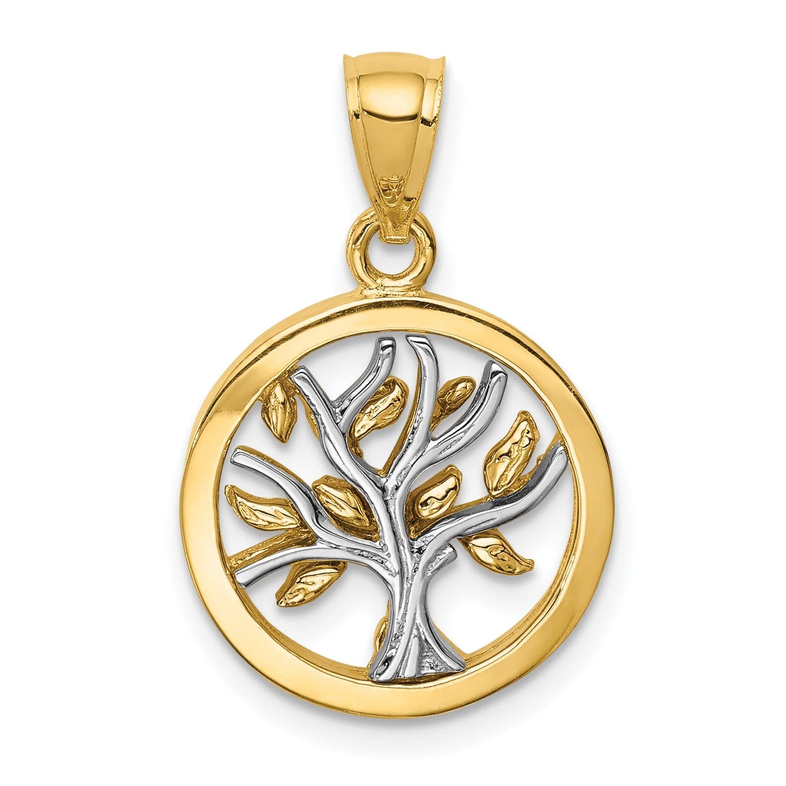 14K Two Tone Gold Solid Polished Finish Round Shape Tree of Life Charm Pendant
