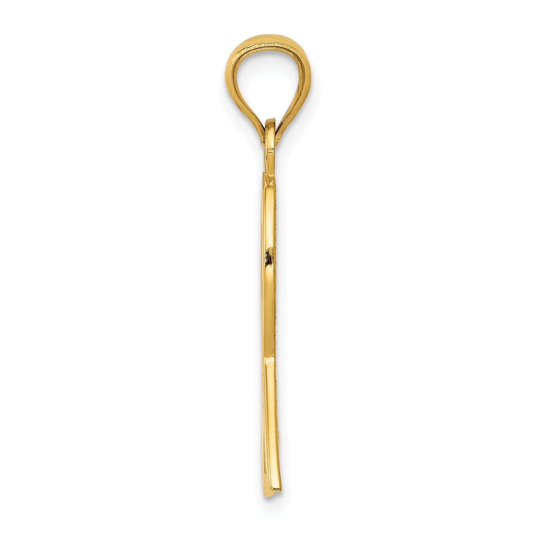 14k Yellow Gold Solid Large Size Polished Textured Pink Enameled Finish Awareness Ribbon Charm Pendant