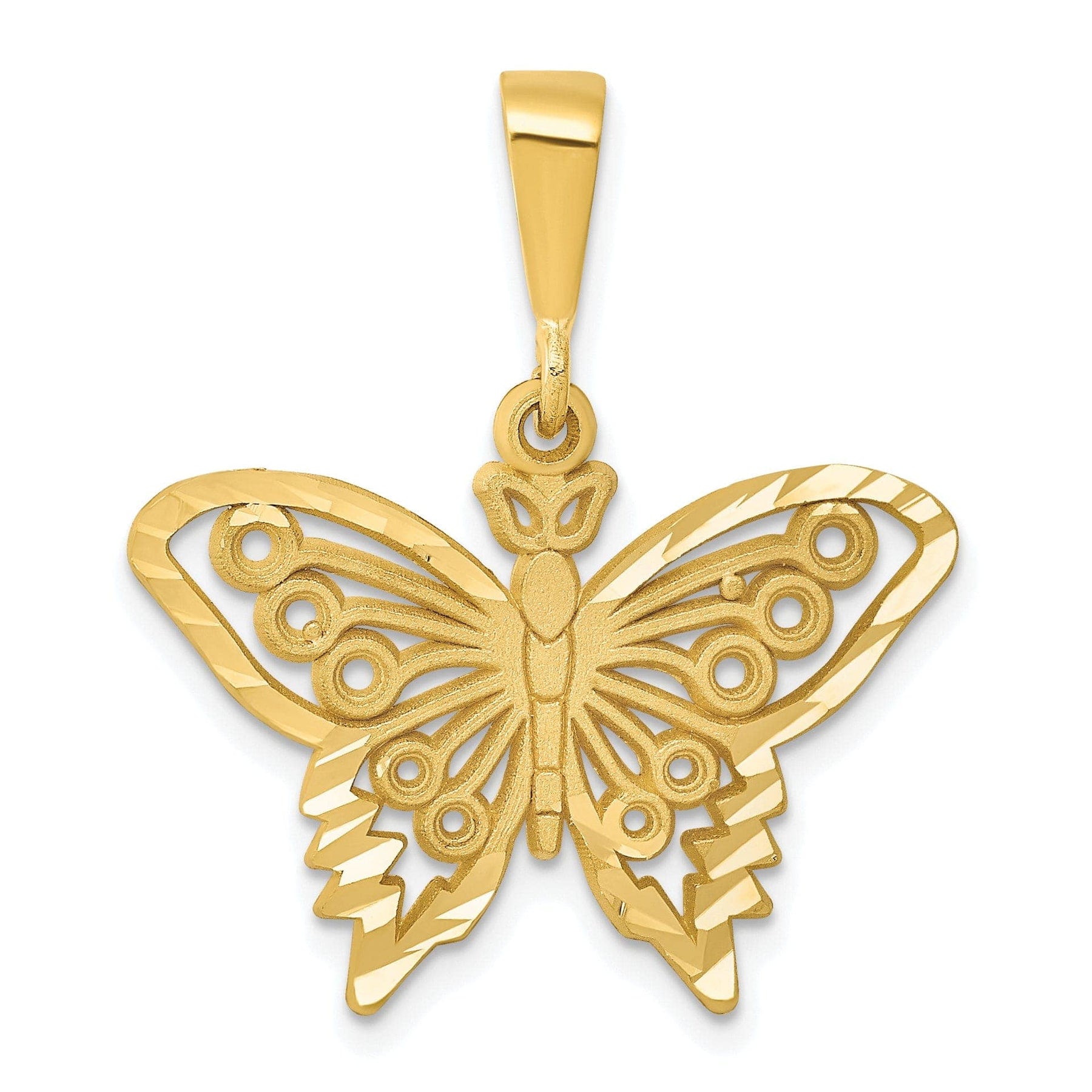 14k Yellow Gold Textured Back Diamond-cut Solid Polished and Brushed Finish Butterfly Charm Pendant