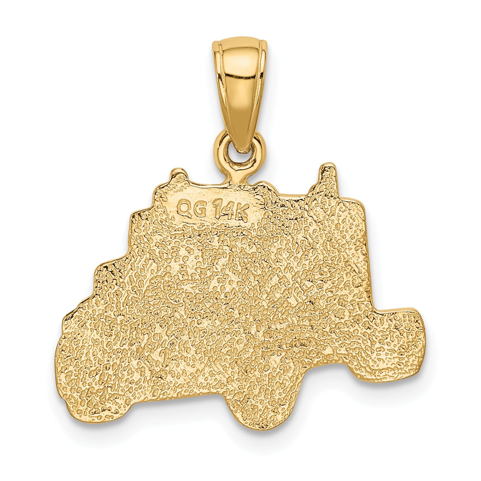 Elegance meets craftsmanship in our stunning 14K Yellow Gold Polished Textured Truck Cab Pendant. This unique pendant features a solid semi Mack truck cab charm design that is sure to turn heads.