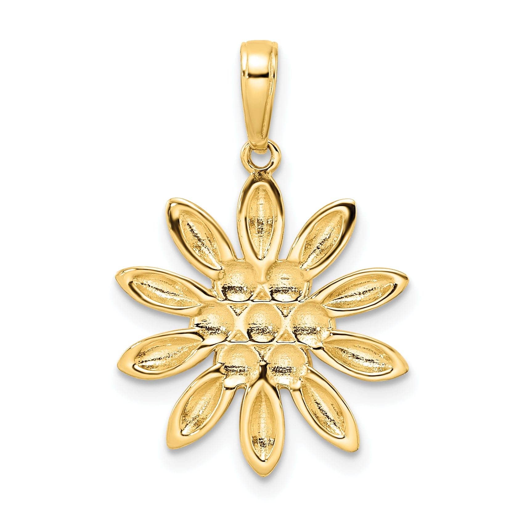 14K Yellow Gold White Rhodium Casted Open Back Diamond-cut Solid Polished Finish Flower Charm Pendant