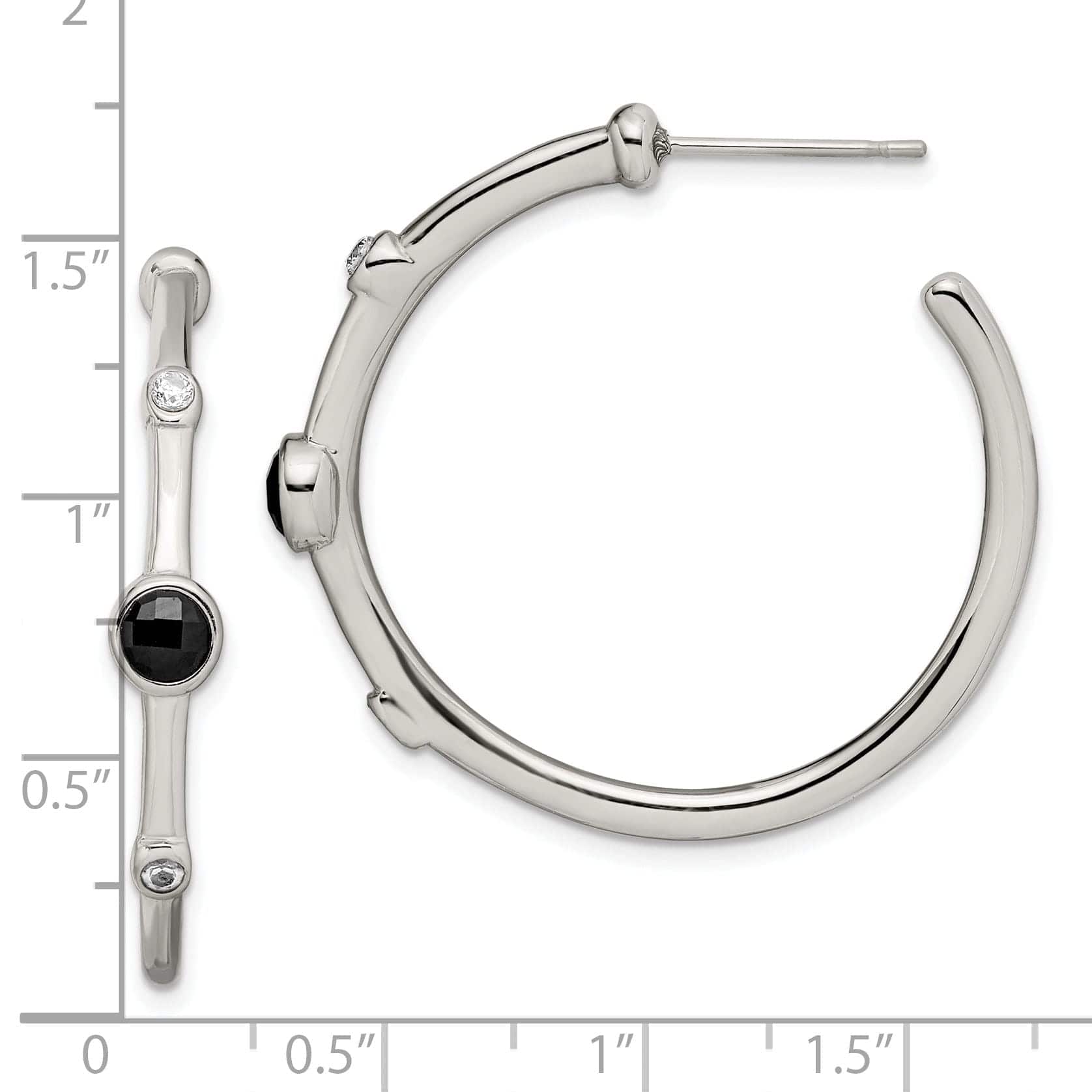 Add a touch of elegance and sophistication to your jewelry collection with these stunning Stainless Steel Polished Black Onyx C.Z Post Hoop Earrings. Made with high-quality stainless steel, these earrings are not only durable but also hypoallergenic, making them perfect for those with sensitive ears.