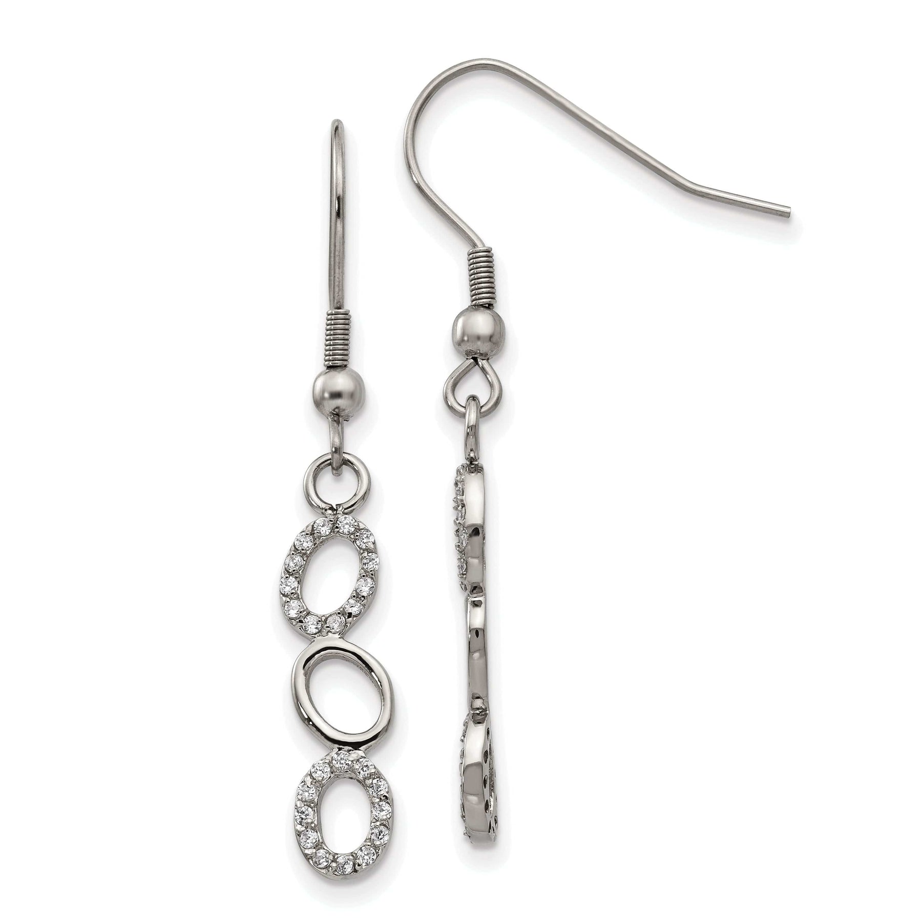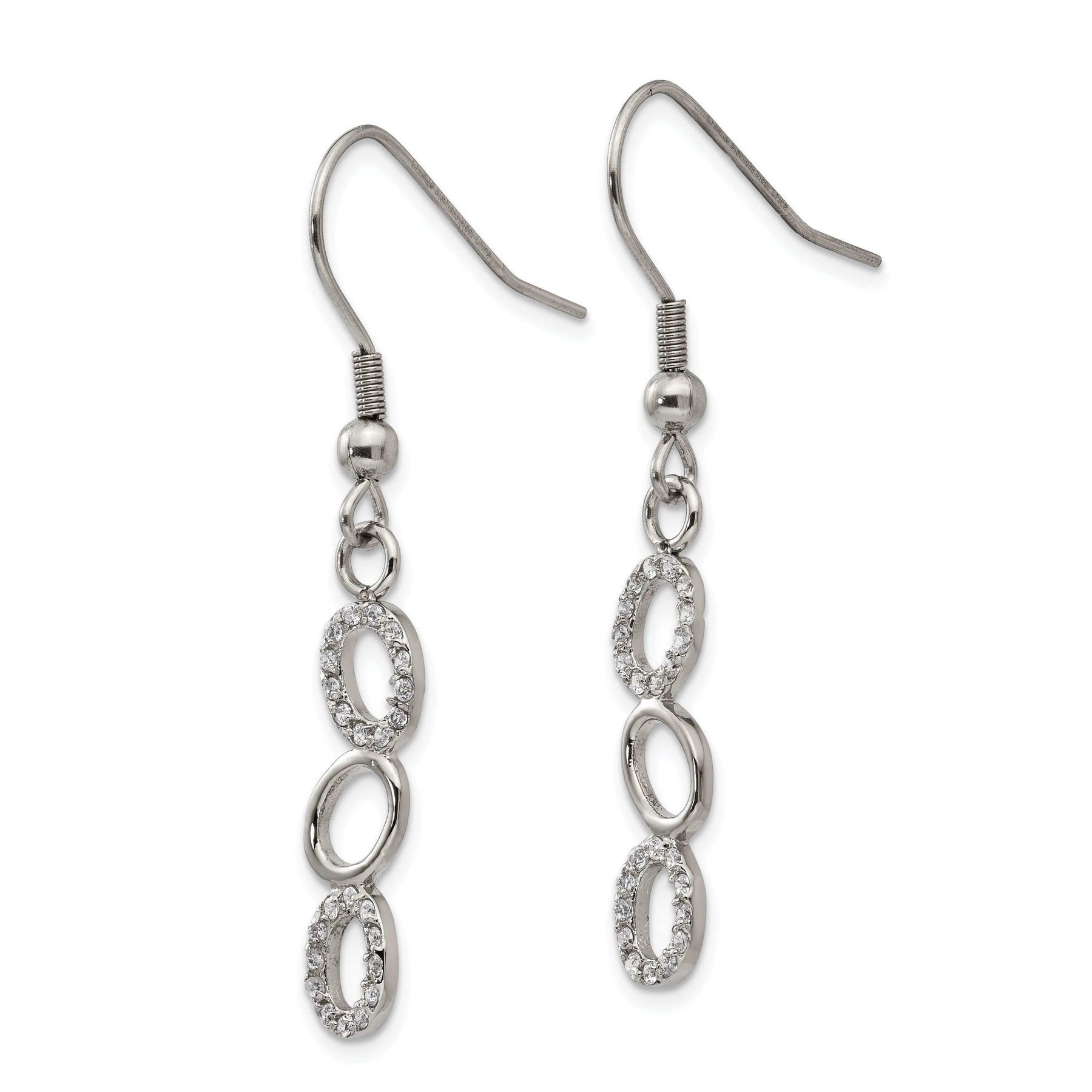 Stainless Steel CZ Shepherd Hook Earrings