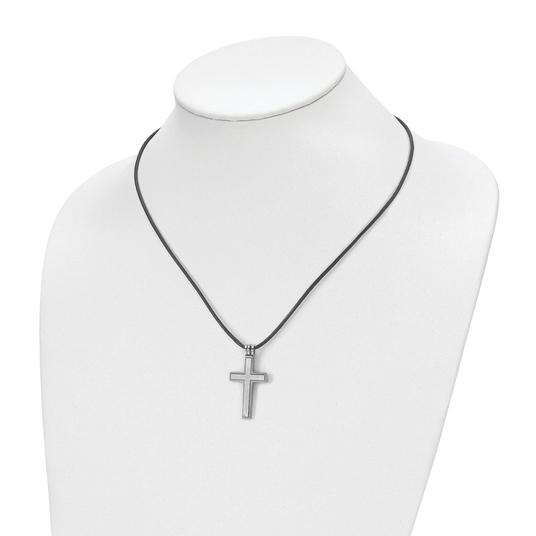Enhance your style with this timeless and contemporary stainless steel leather cord cross necklace. This exquisitely crafted piece features a 2 piece movable cross pendant that adds a unique and modern touch to your ensemble. The necklace has an average weight of 6 grams, making it comfortable to wear all day long. The chain length is 18 inches, perfect for adding a subtle yet striking statement to your outfit.
