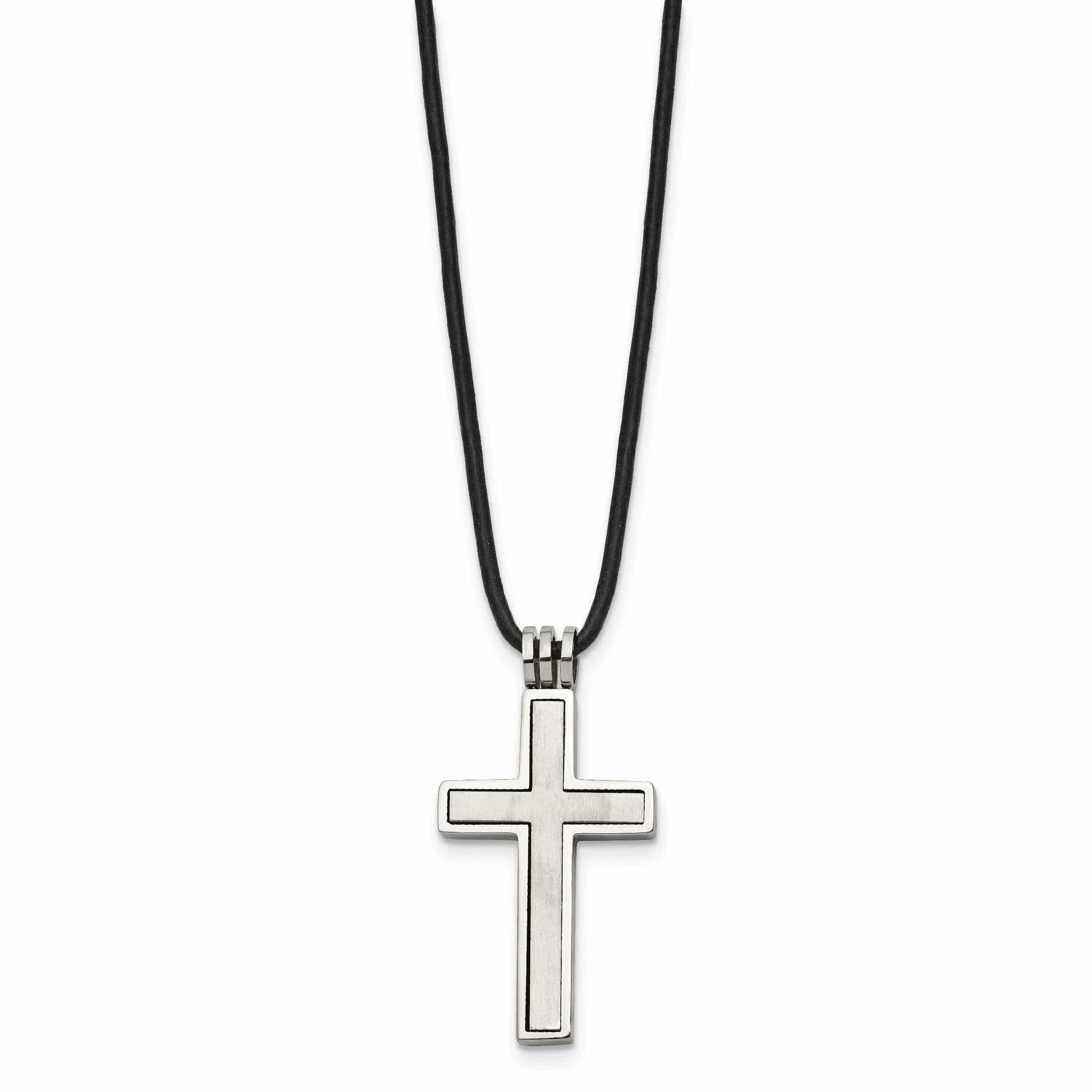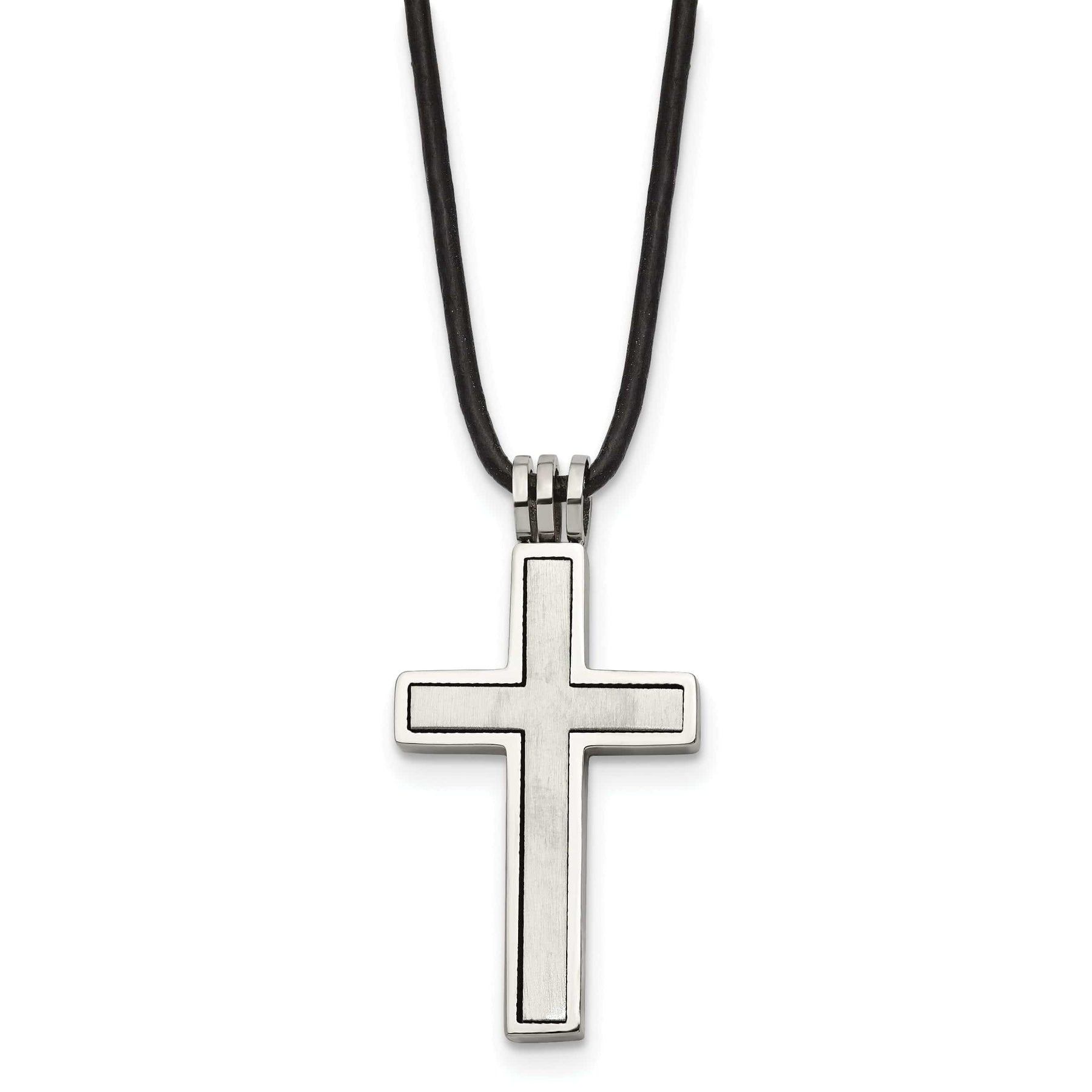 Stainless Steel Leather Cord Cross Necklace