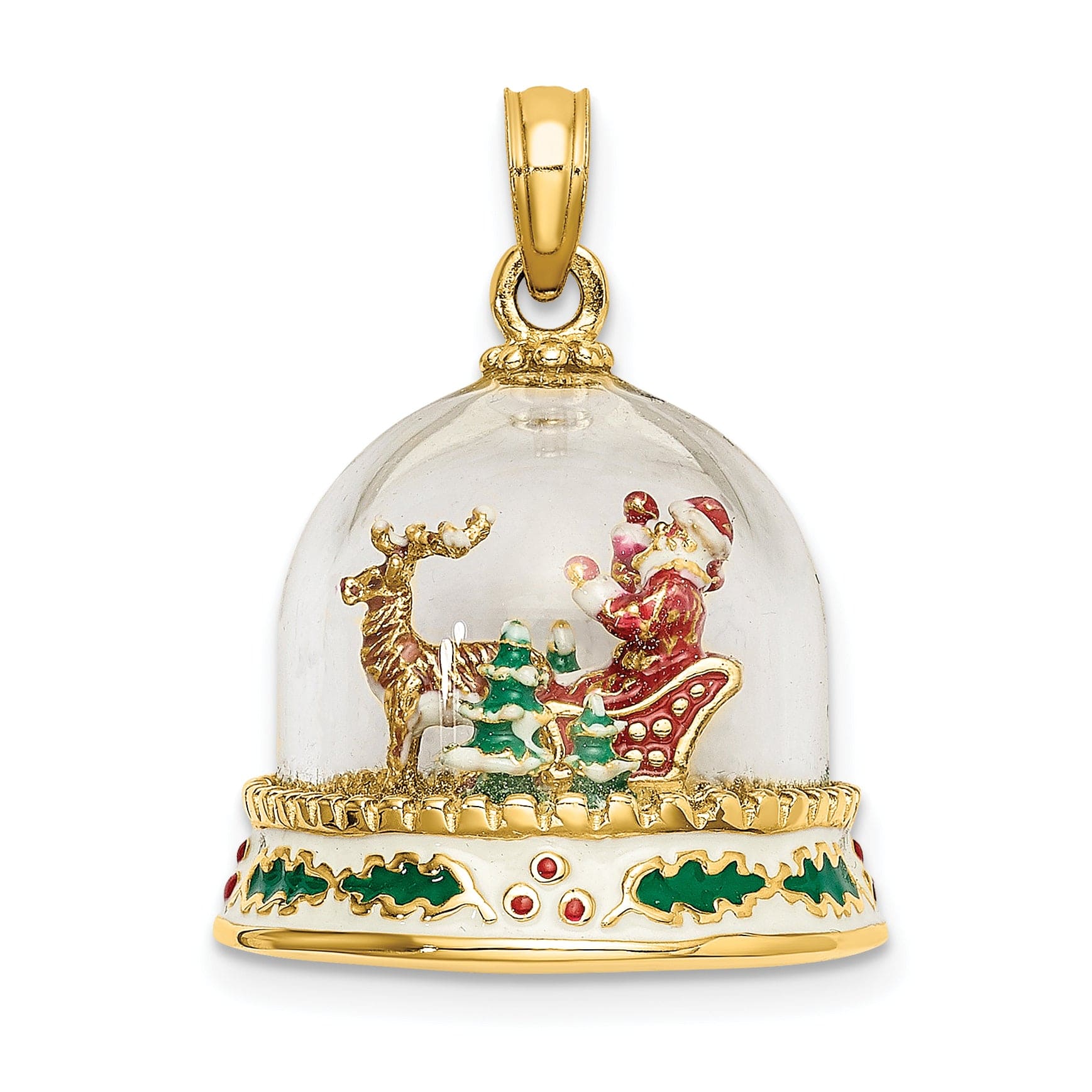 This pendant stands as a celebration of the holiday spirit, making it an exceptional addition to any jewelry collection. Embrace the season's joy and bring a smile to your loved ones with this enchanting charm that communicates warmth and festivity. Perfect for gifting or personal adornment, our 14K Yellow Gold 3-D HAPPY HOLIDAYS Glass Snow Globe Charm Pendant is a timeless treasure that will remind you of the magic of the holidays, no matter the time of year.