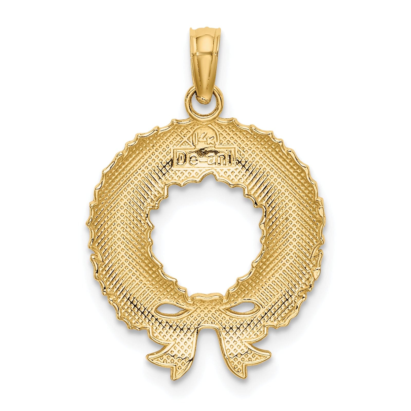 14K Yellow Gold Enameled Christmas Wreath Charm Pendant