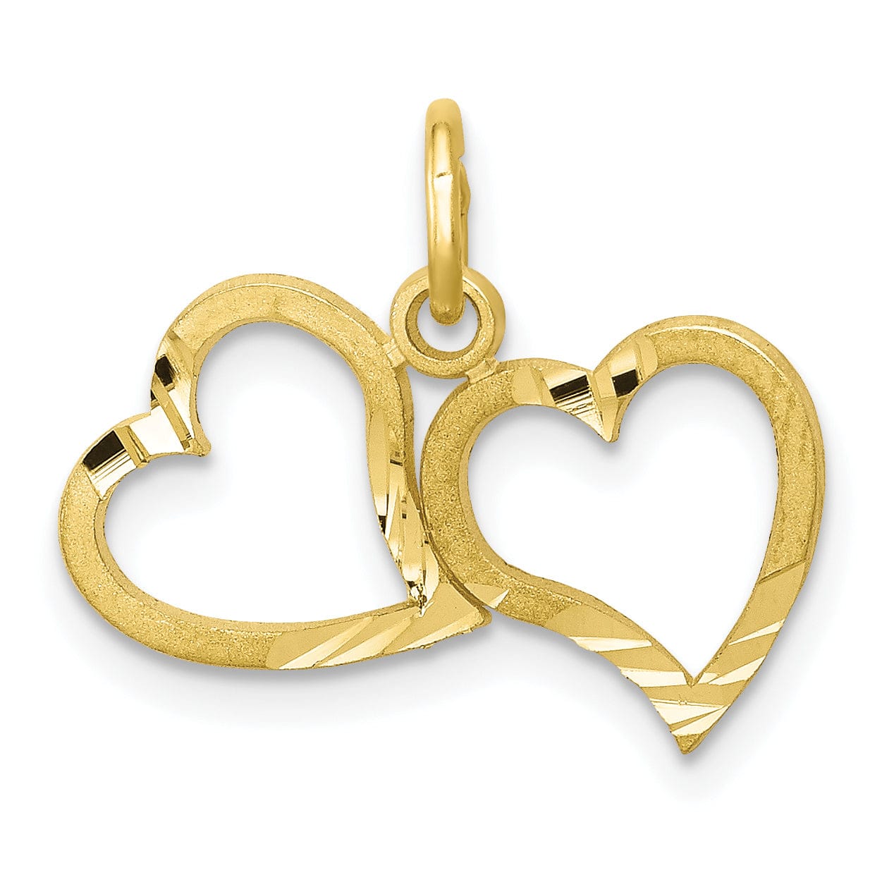 Elegance and sophistication meet in this stunning Solid 10k Yellow Gold Double Heart Pendant. Crafted from high-quality 10k yellow gold, this pendant features a polished satin diamond cut finish that adds a touch of sparkle and shine. The double heart design is stamped onto the gold, adding a unique and charming element to this piece.