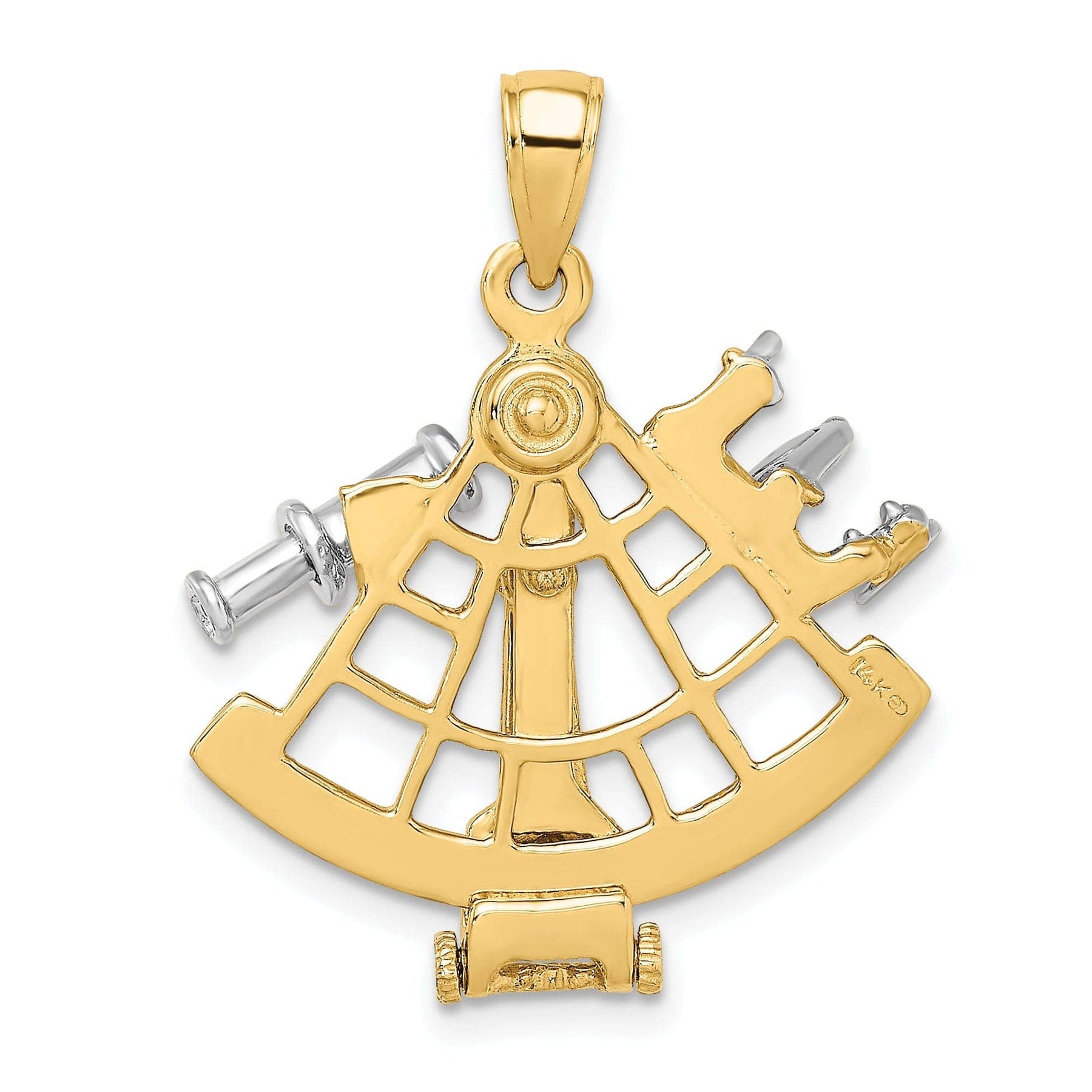 14k Two Tone Gold Polished Finish 3-Dimensional Moveable Sextant Charm Pendant