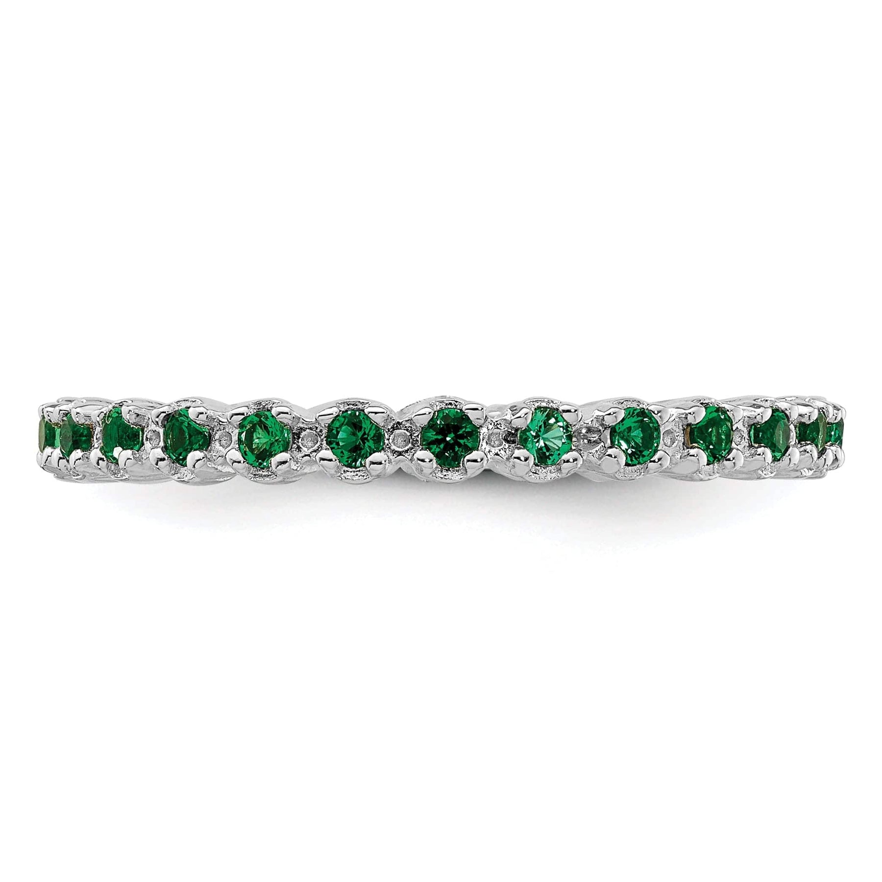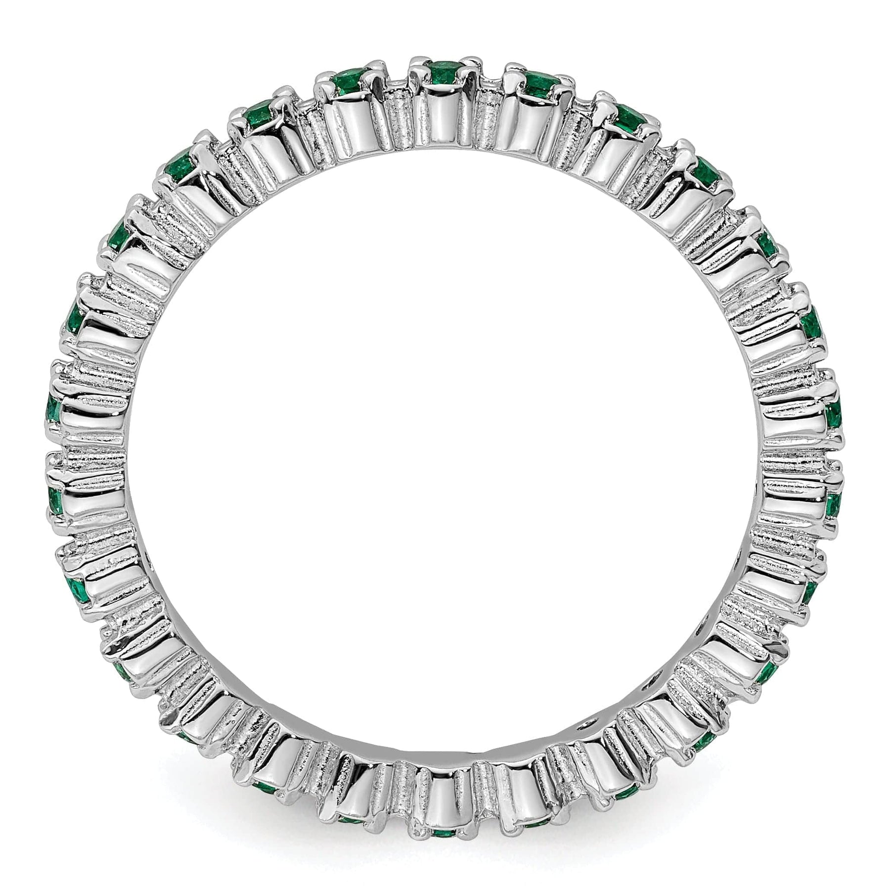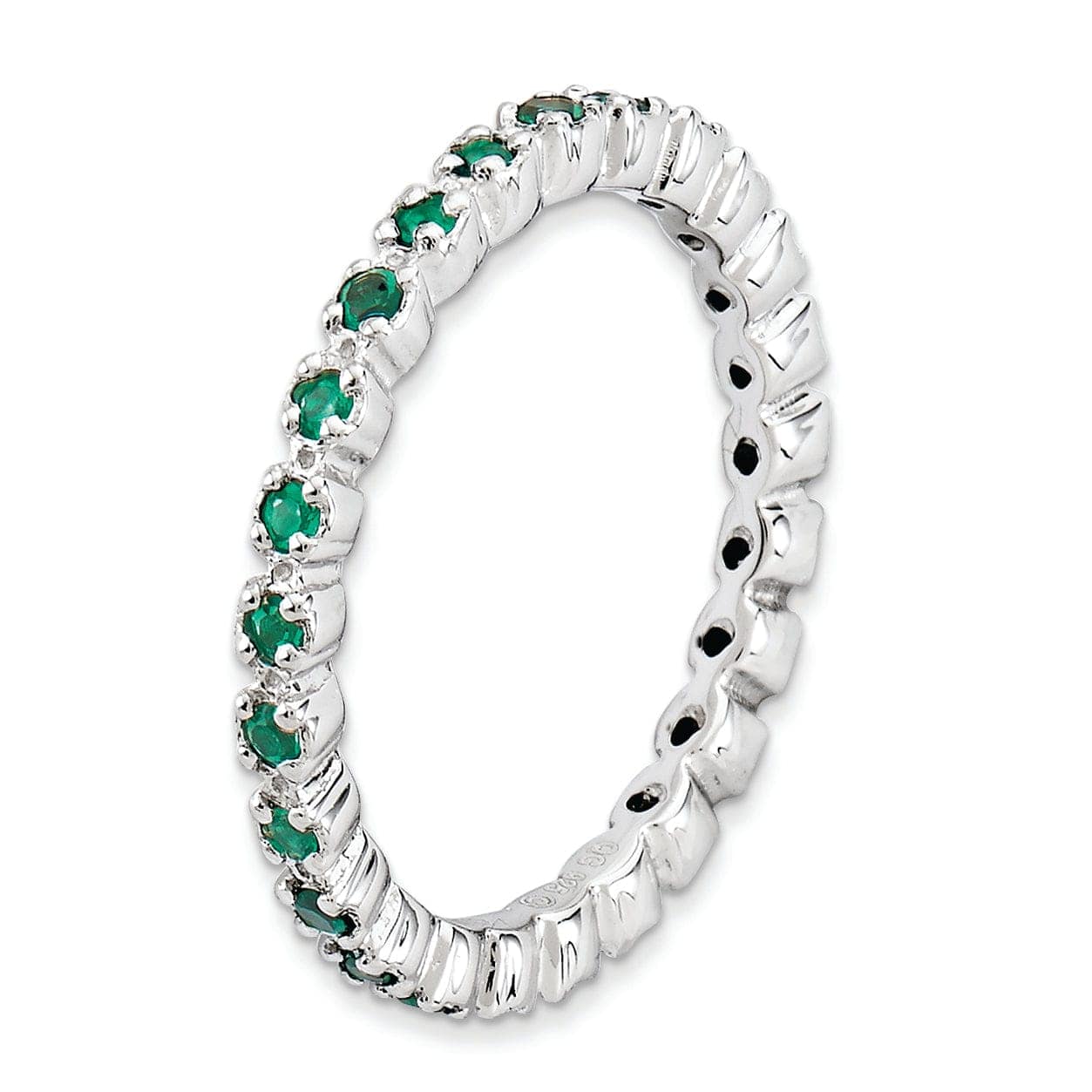 Introducing the exquisite Sterling Silver Stackable Expressions Emerald Ring, a stunning addition to any jewelry collection. This gorgeous ring features a radiant created emerald gemstone that beautifully complements the sleek design of the sterling silver band.