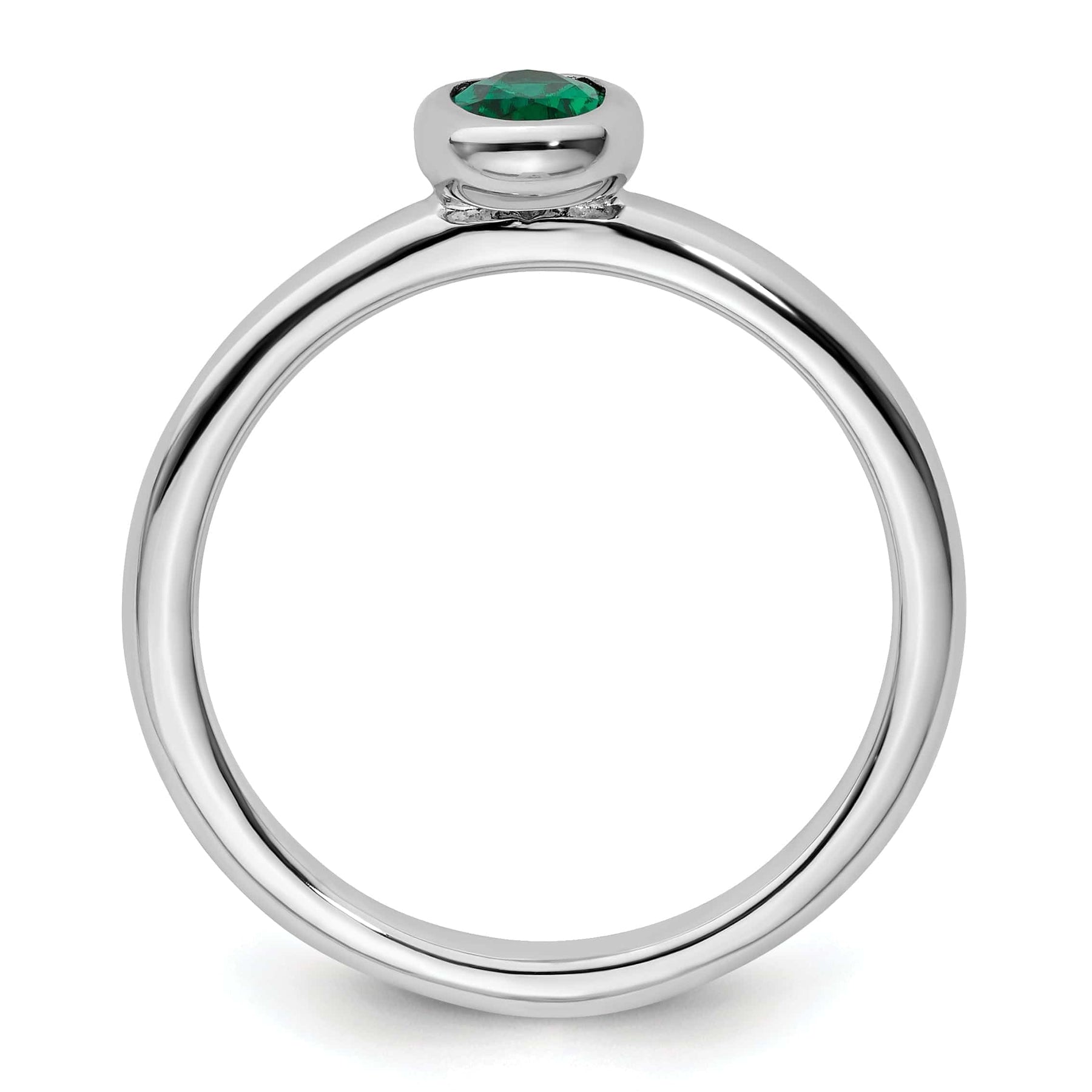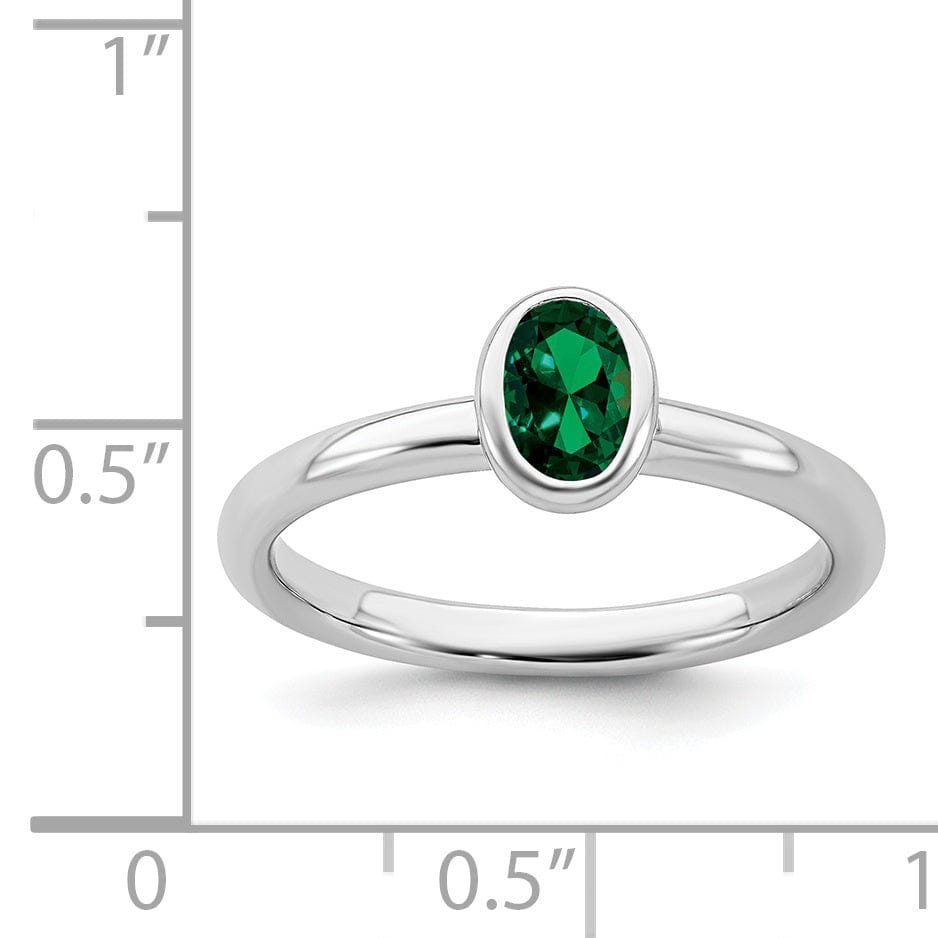 Whether you wear it on its own for a subtle touch of elegance or stack it with other rings for a bold statement, this Sterling Silver Stackable Expressions Oval Created Emerald Ring is sure to turn heads wherever you go. Treat yourself or a loved one to this timeless piece that will be cherished for years to come.