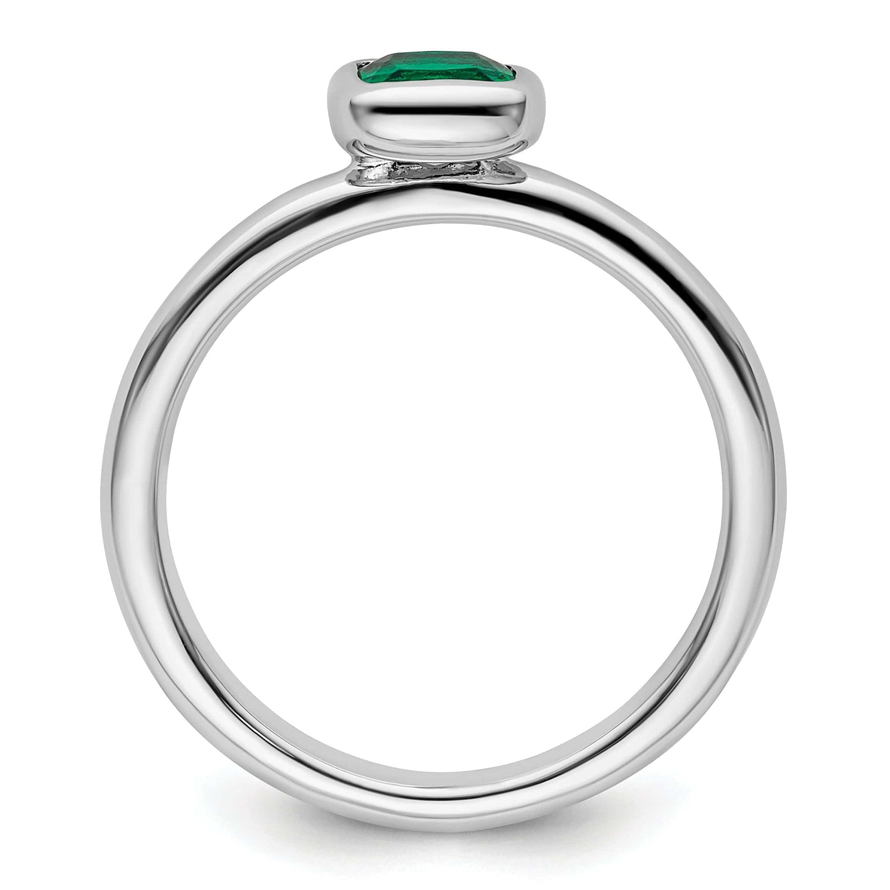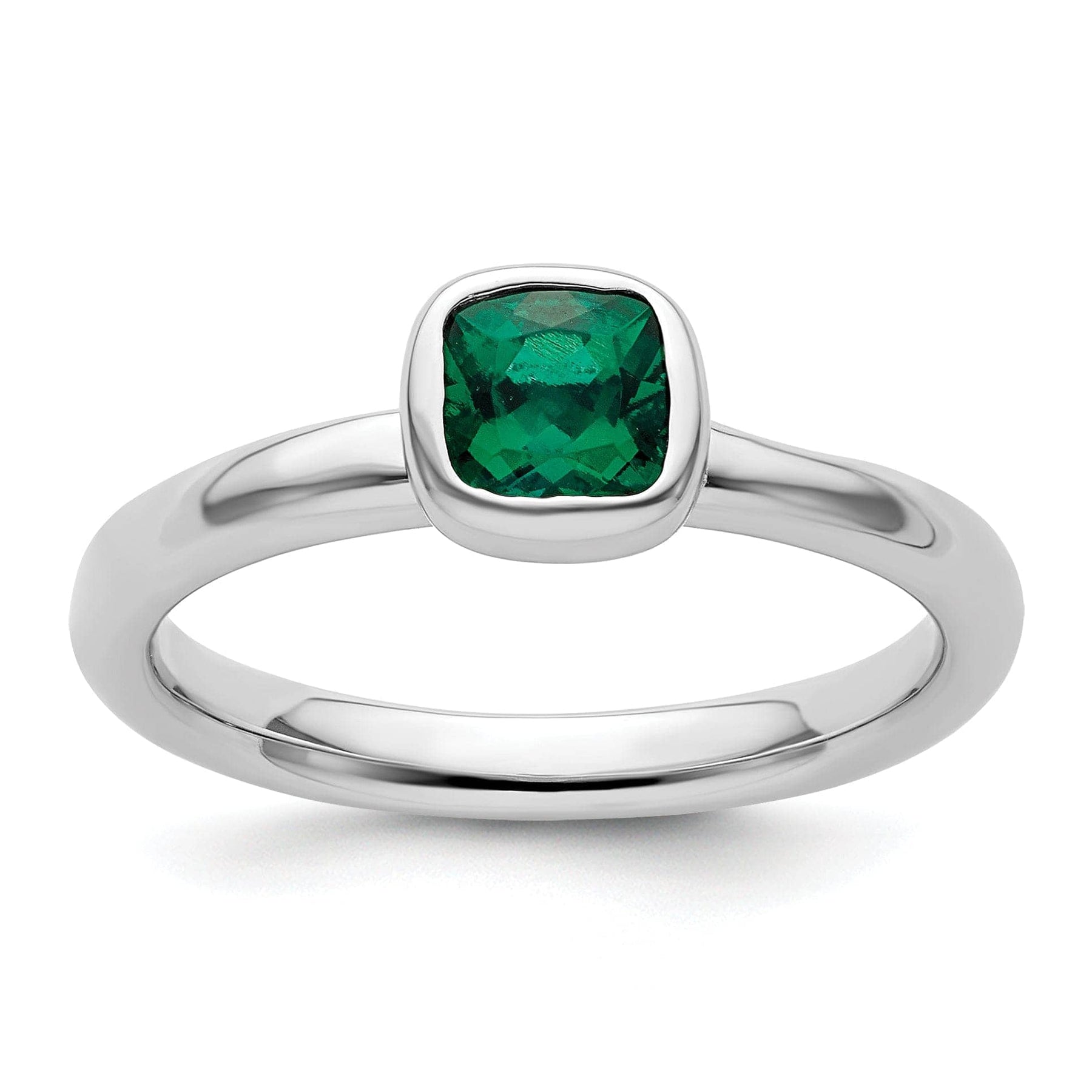 Elevate your jewelry collection with this exquisite Sterling Silver Stackable Expressions Cushion Cut Created Emerald Ring. Each ring is carefully crafted from premium sterling silver, ensuring durability and long-lasting shine. The cushion cut created emerald adds a touch of elegance and sophistication to this piece.