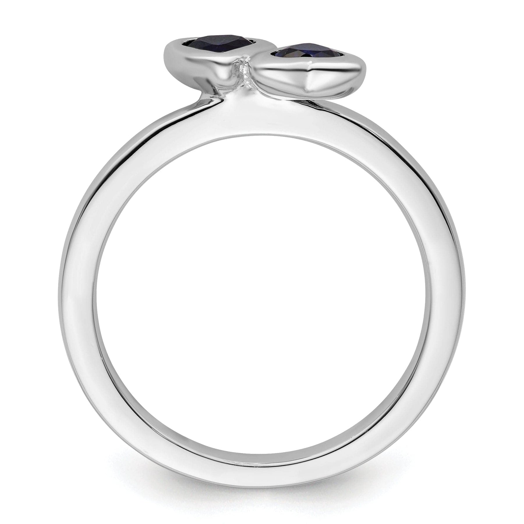 Elevate your jewelry collection with this stunning Sterling Silver Created Sapphire Double Heart Ring. Crafted with precision and care, this exquisite piece features two interlocking heart shapes adorned with vibrant created sapphires. The shimmering blue gemstones are set in lustrous sterling silver, creating a truly breathtaking contrast.