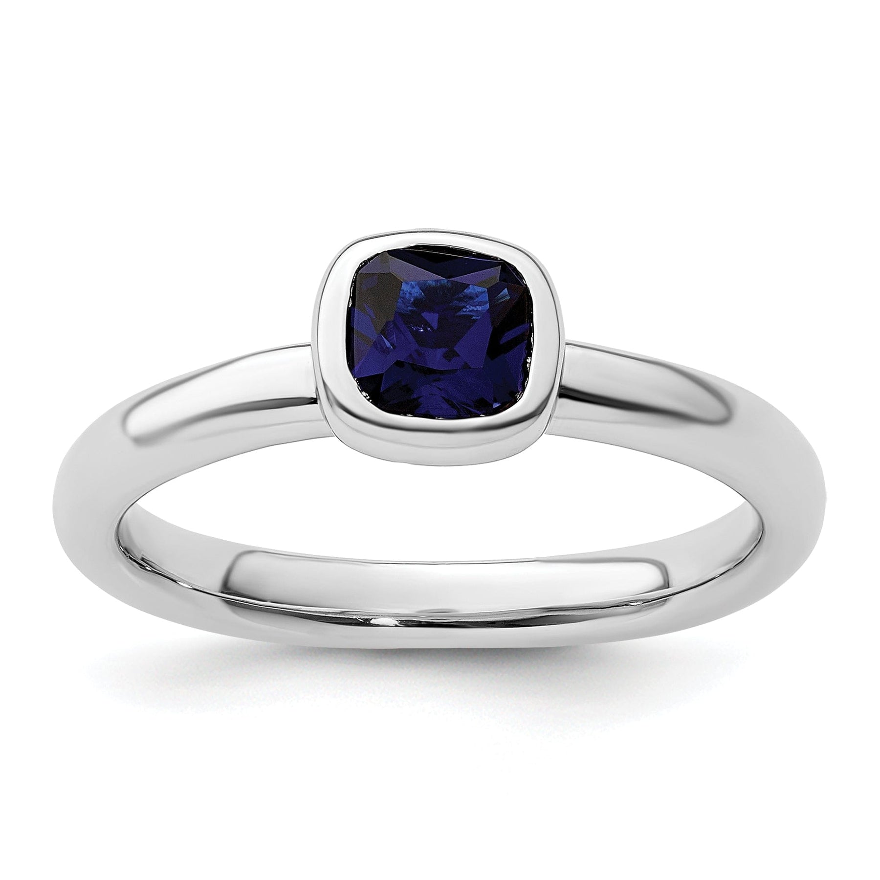 Sterling Silver Cushion Cut Created Sapphire Ring