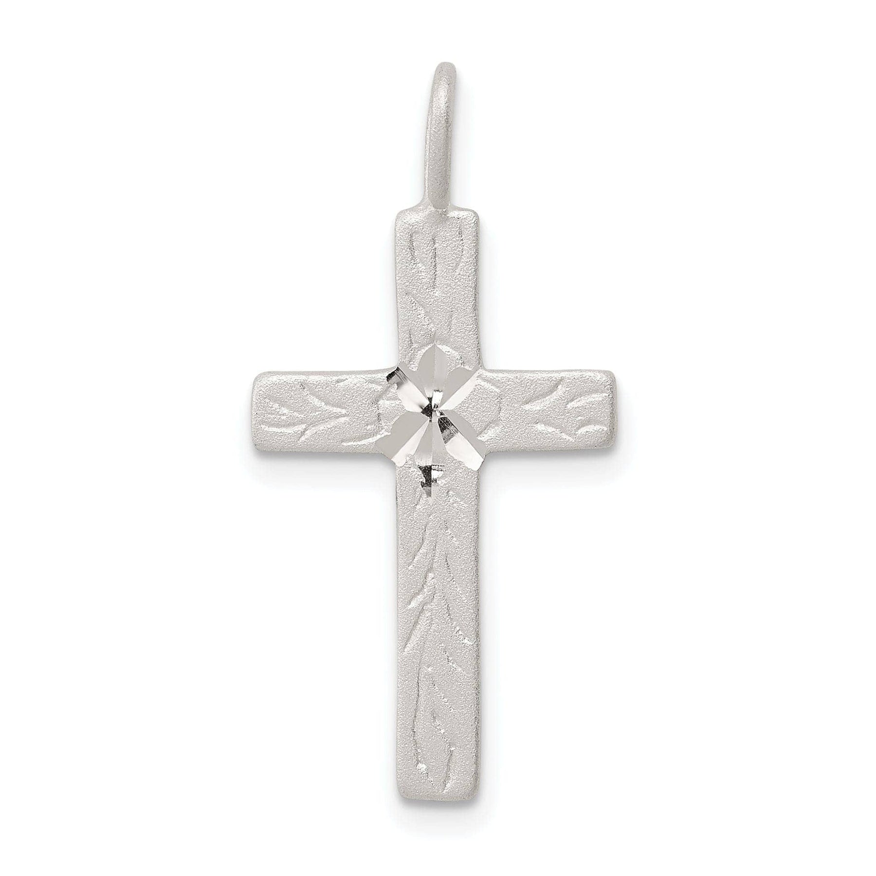 This stunning Latin cross pendant is a must-have for anyone who appreciates fine craftsmanship and religious symbolism. Crafted from solid sterling silver, this pendant features a polished satin diamond-cut finish that adds a touch of elegance and sophistication to any outfit.