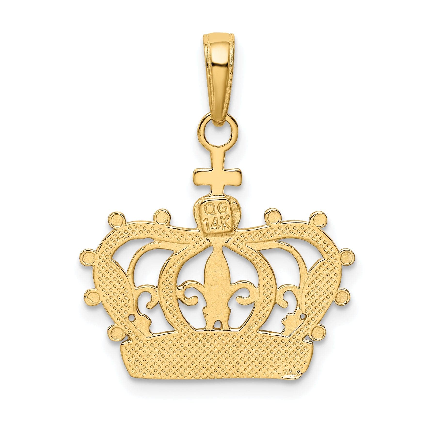 14K Yellow Gold White Rhodium Solid Textured Polished Finish Mens Crown Design Charm Pendant