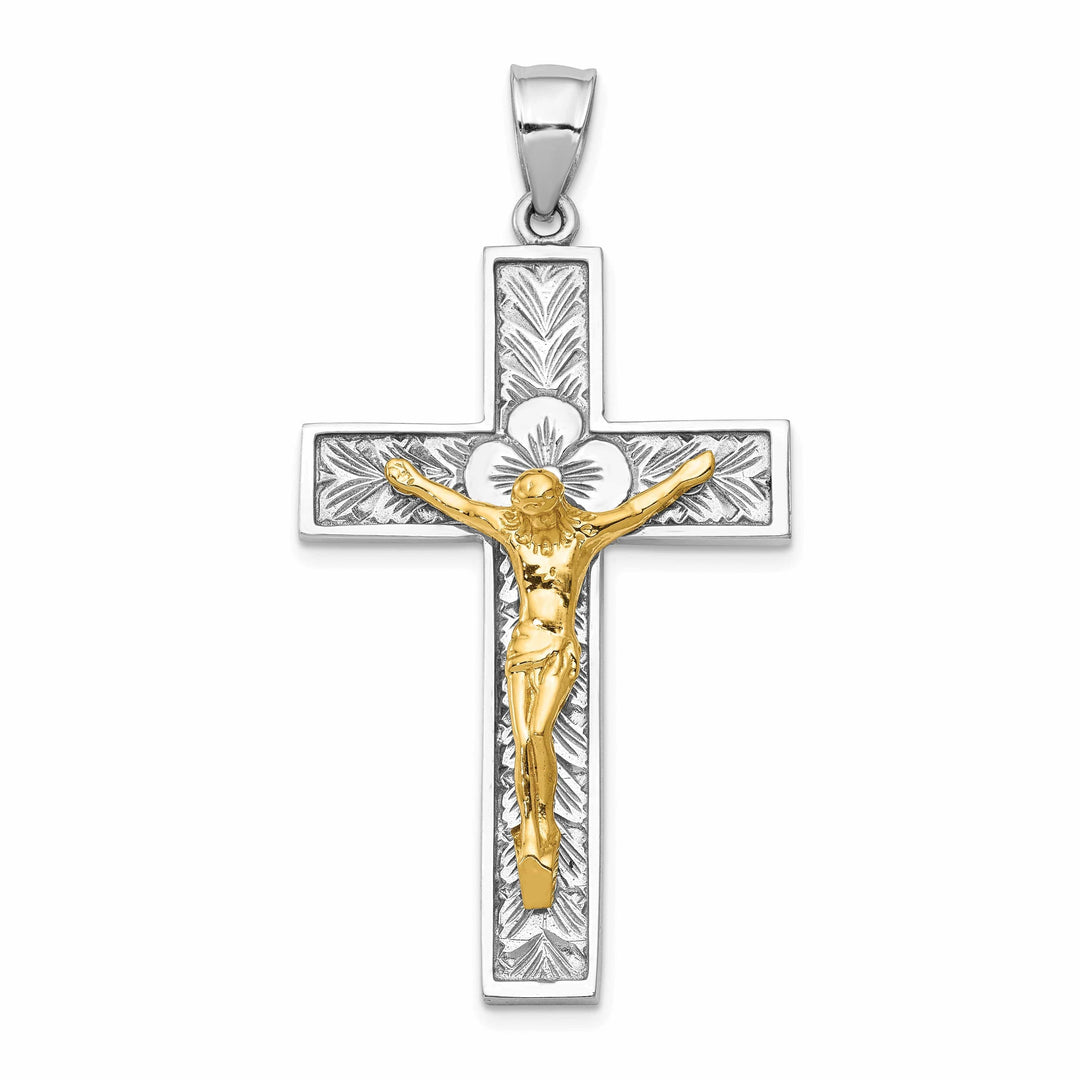Perfect for both men and women, this 14k two-tone gold crucifix pendant is versatile and timeless, making it an excellent choice for everyday wear or special occasions. Add a touch of elegance to your look with this exquisite piece that symbolizes strength, faith, and style.