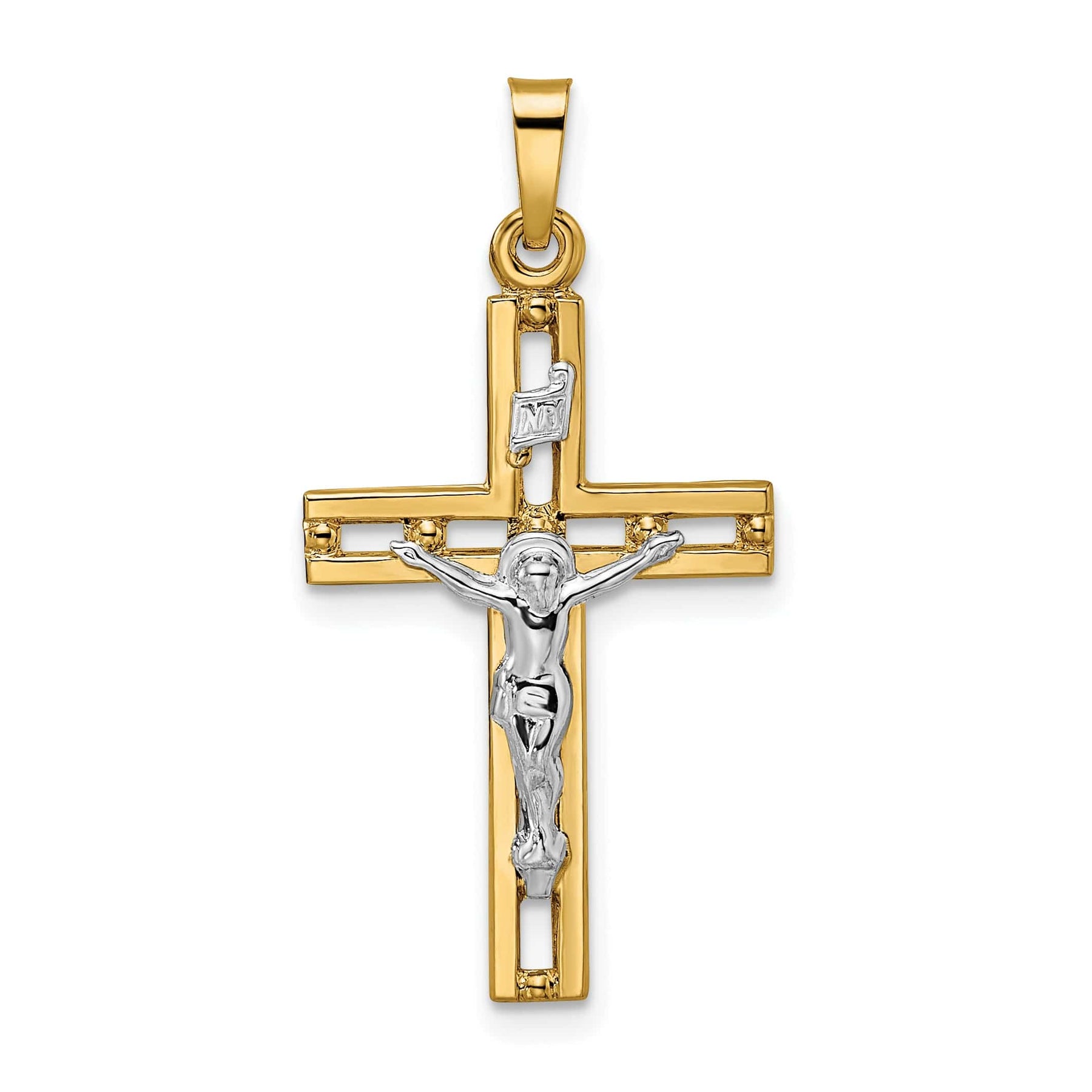 14K Two-Tone Gold Modern Polished Solid INRI Crucifix Cross Pendant