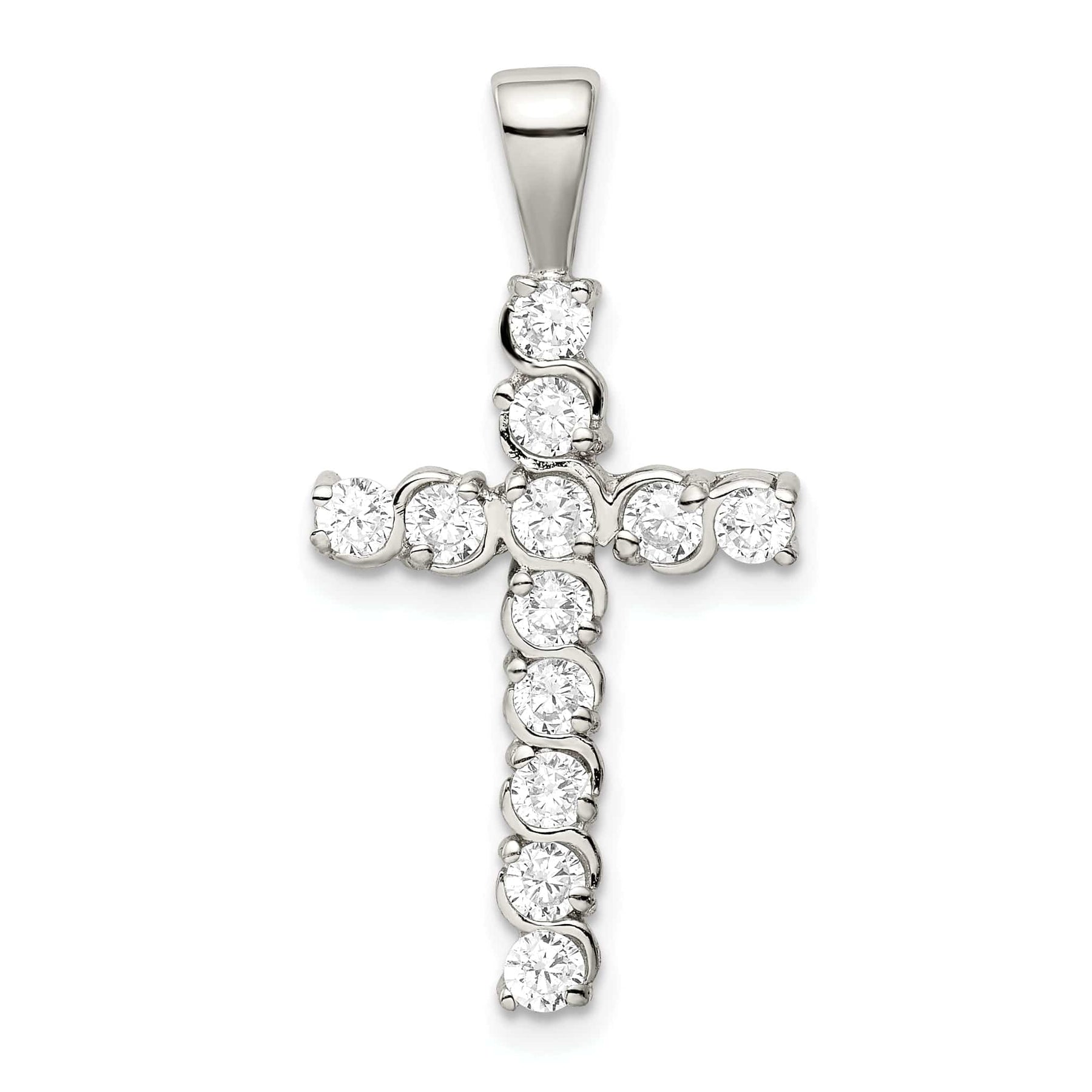 This exquisite Latin cross pendant is a stunning symbol of faith and devotion. Crafted from solid sterling silver, this pendant features a beautiful polished finish that enhances its intricate design. The center of the cross is adorned with sparkling cubic zirconia stones, adding a touch of elegance and sophistication to the piece.