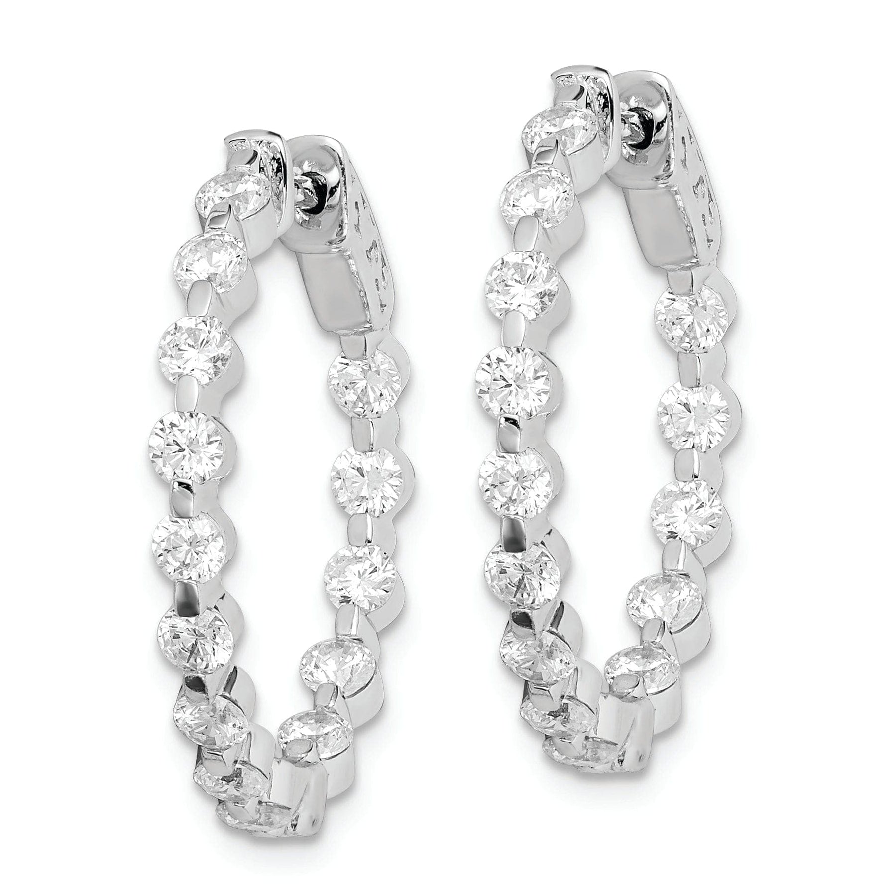 Elevate your everyday look with these stunning Sterling Silver CZ Hoop Earrings. Crafted from high-quality sterling silver and rhodium plated for a brilliant shine, these earrings feature dazzling cubic zirconia stones both on the inside and outside of the hoop for double the sparkle. The hinged design allows for easy and secure wear, making them perfect for day-to-night wear.