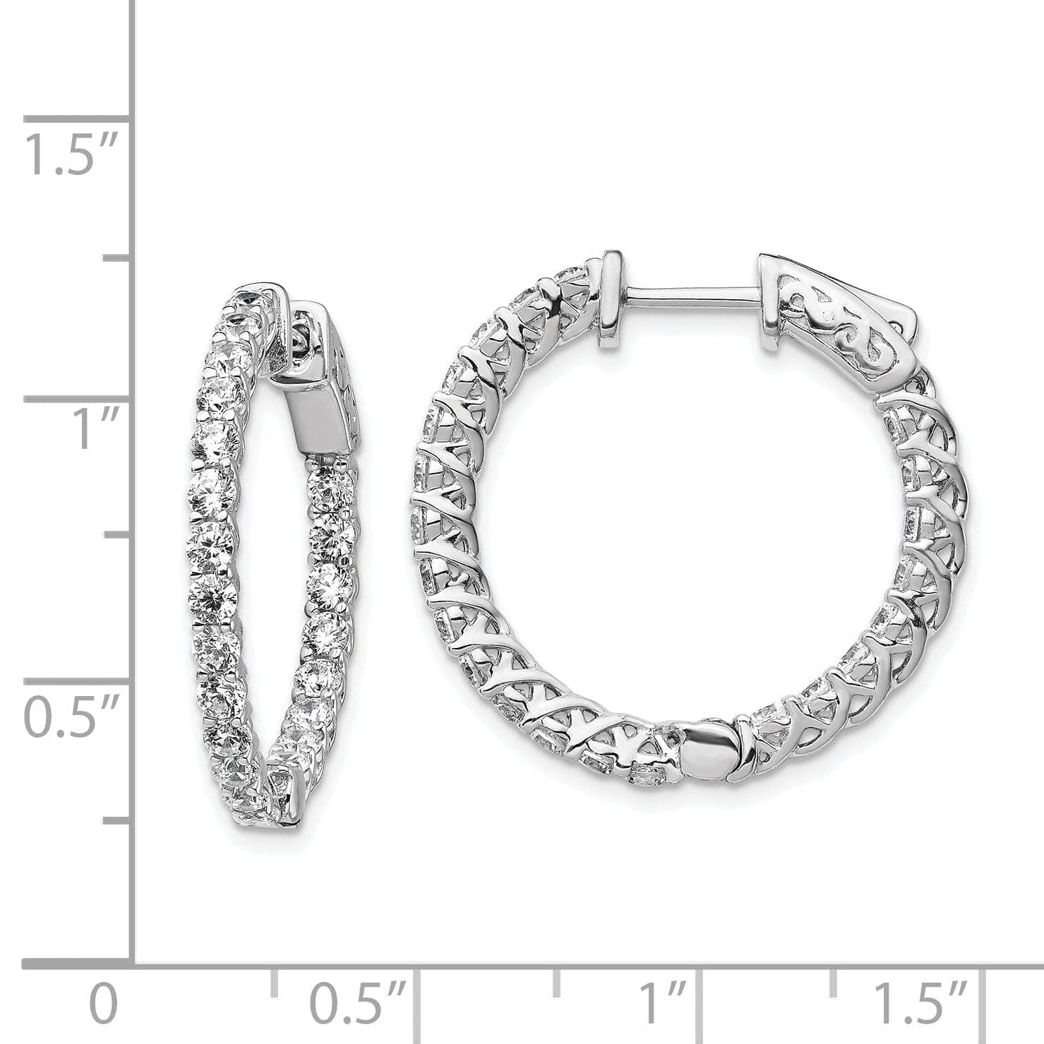 Featuring a classic hoop design with cubic zirconia stones on both the inside and outside of the earrings, these hoops are sure to catch the light and sparkle with every move. The average weight of each earring is 5.69 grams, making them lightweight and comfortable to wear all day long.