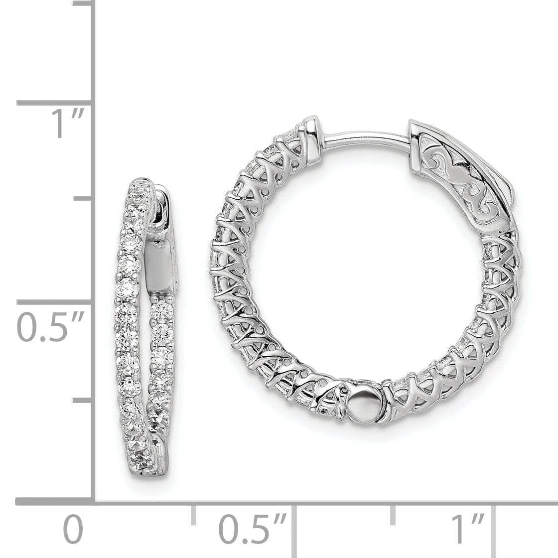 Elevate your jewelry collection with these exquisite Sterling Silver CZ Hoop Earrings. Crafted from high-quality sterling silver and rhodium plated for extra shine and durability, these earrings are sure to turn heads wherever you go. The dazzling cubic zirconia stones are carefully placed inside and outside the hoop for maximum sparkle and glamour.