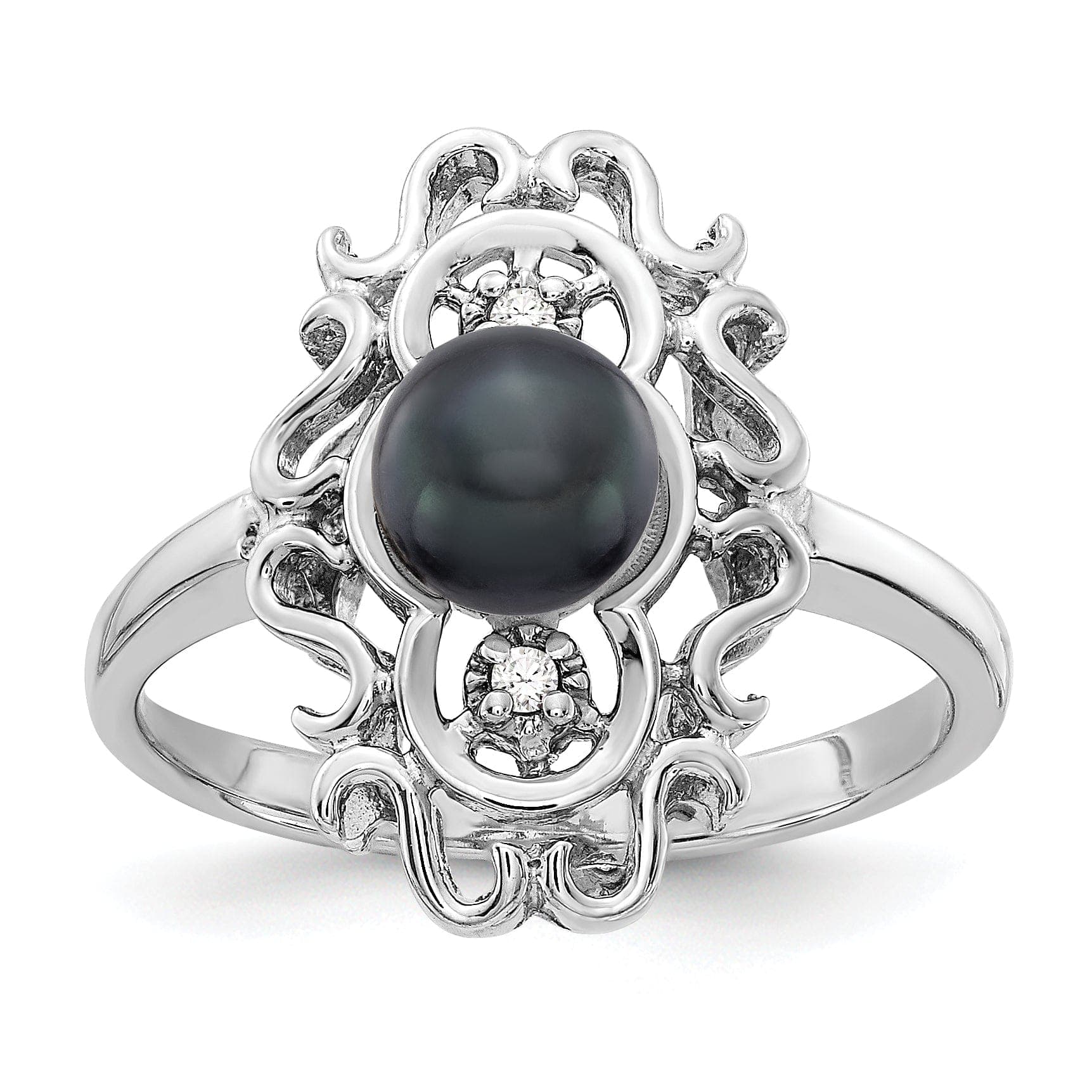 14k White Gold Black Pearl G-I I1 Diamond Ring