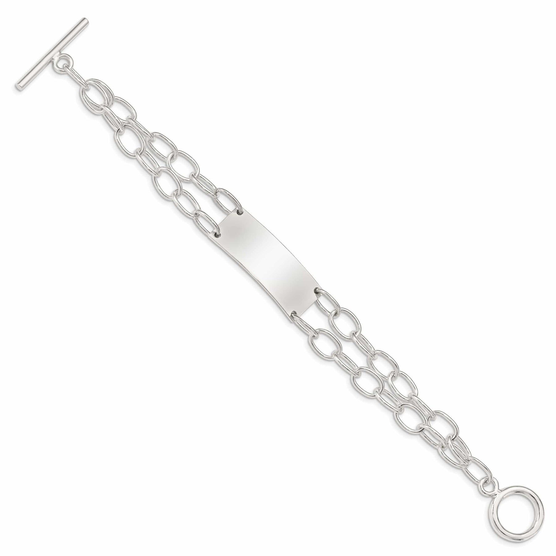 Personalize this bracelet by adding your own engraved message or initials on the I.D plate, making it a truly one-of-a-kind piece that reflects your own personal style. The timeless design of the Silver Double Strand Oval Link I.D Bracelet makes it a versatile accessory that can be dressed up or down for any occasion.